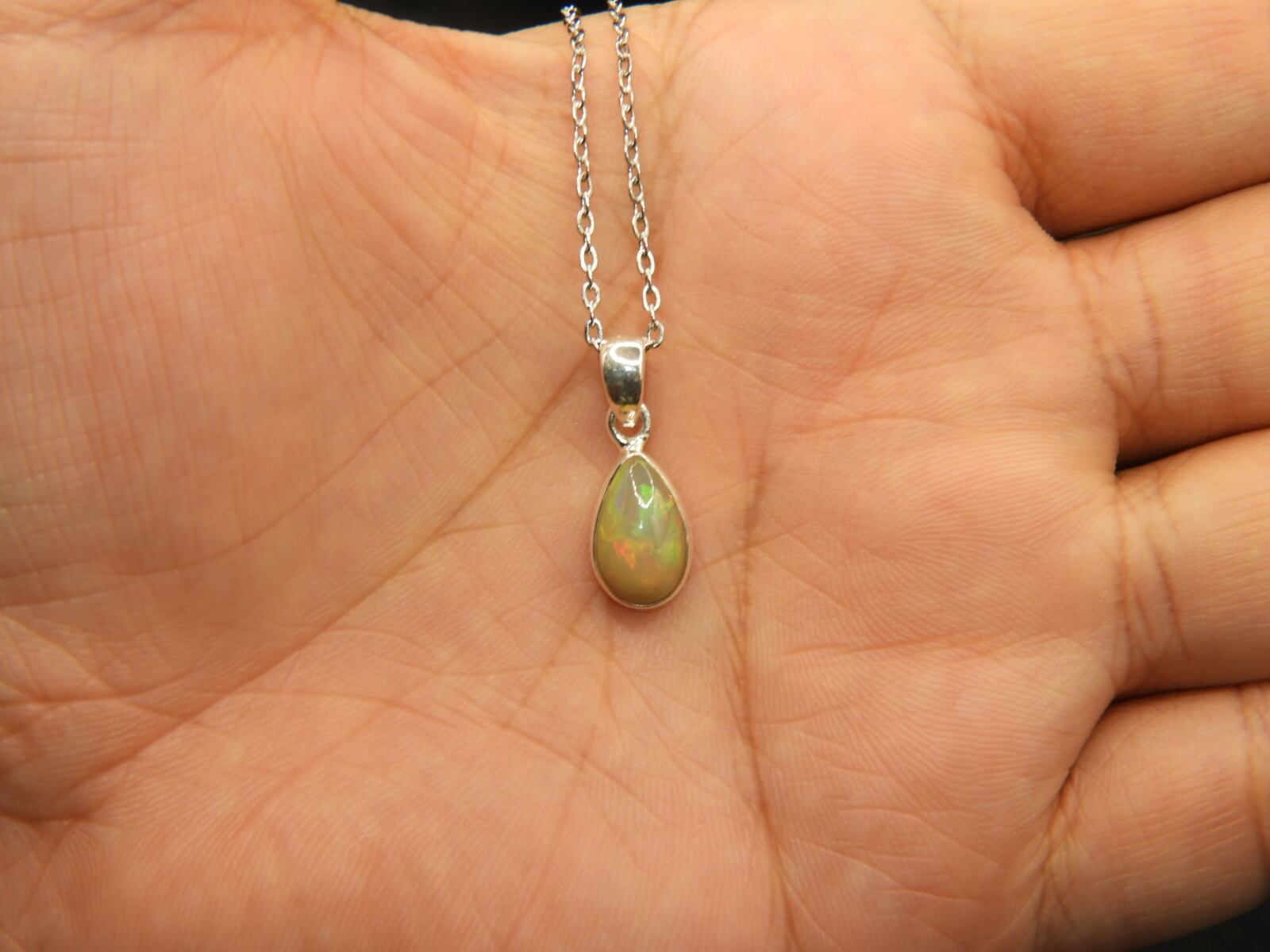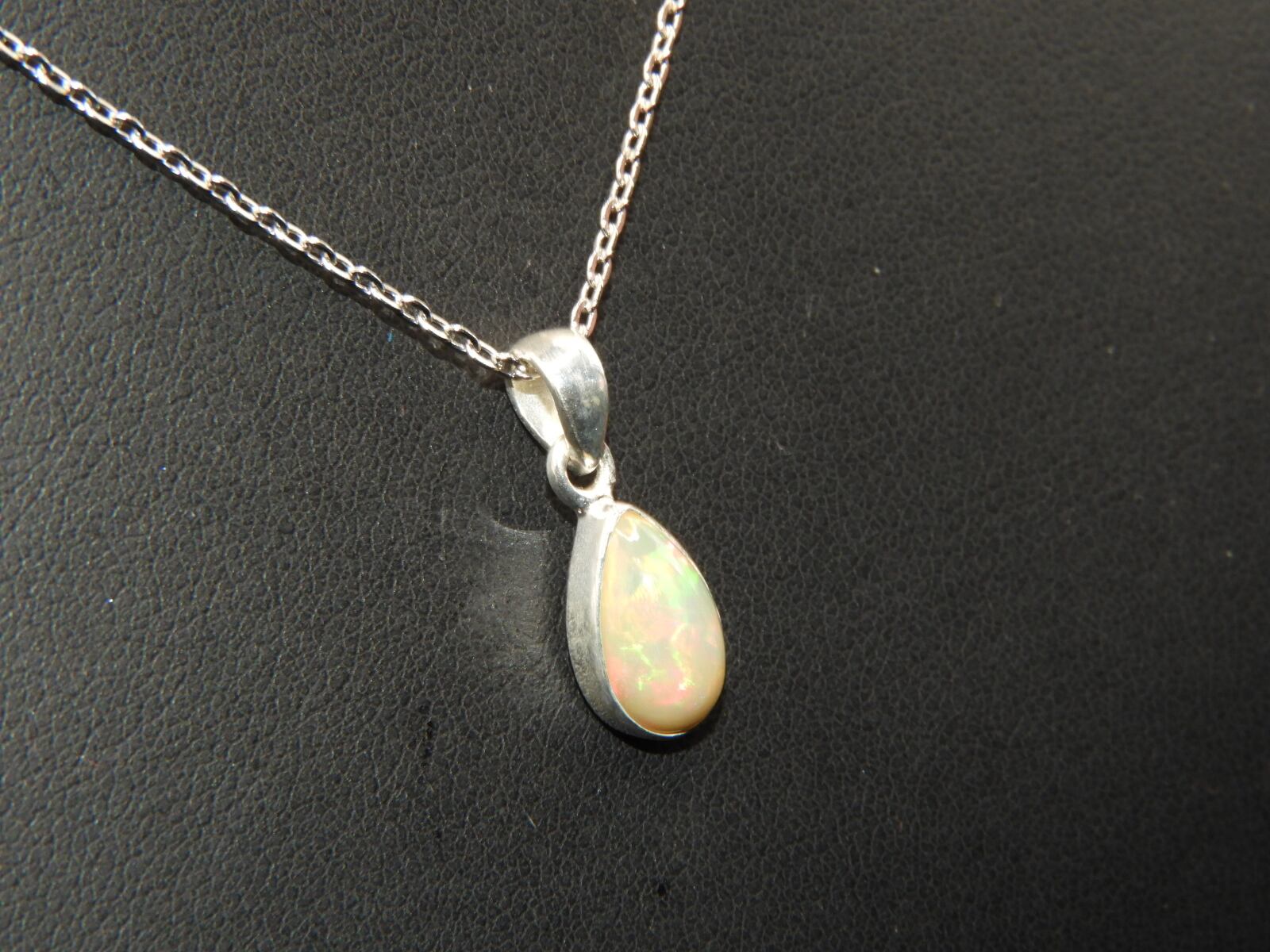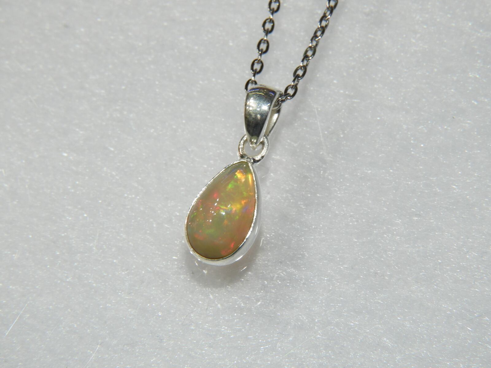 遊色効果のキラキラが魅了するオパールペンダントネックレス!インド職人の手作り!一点物 シルバー925天然石91