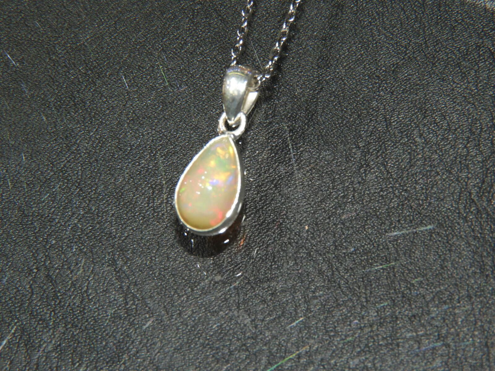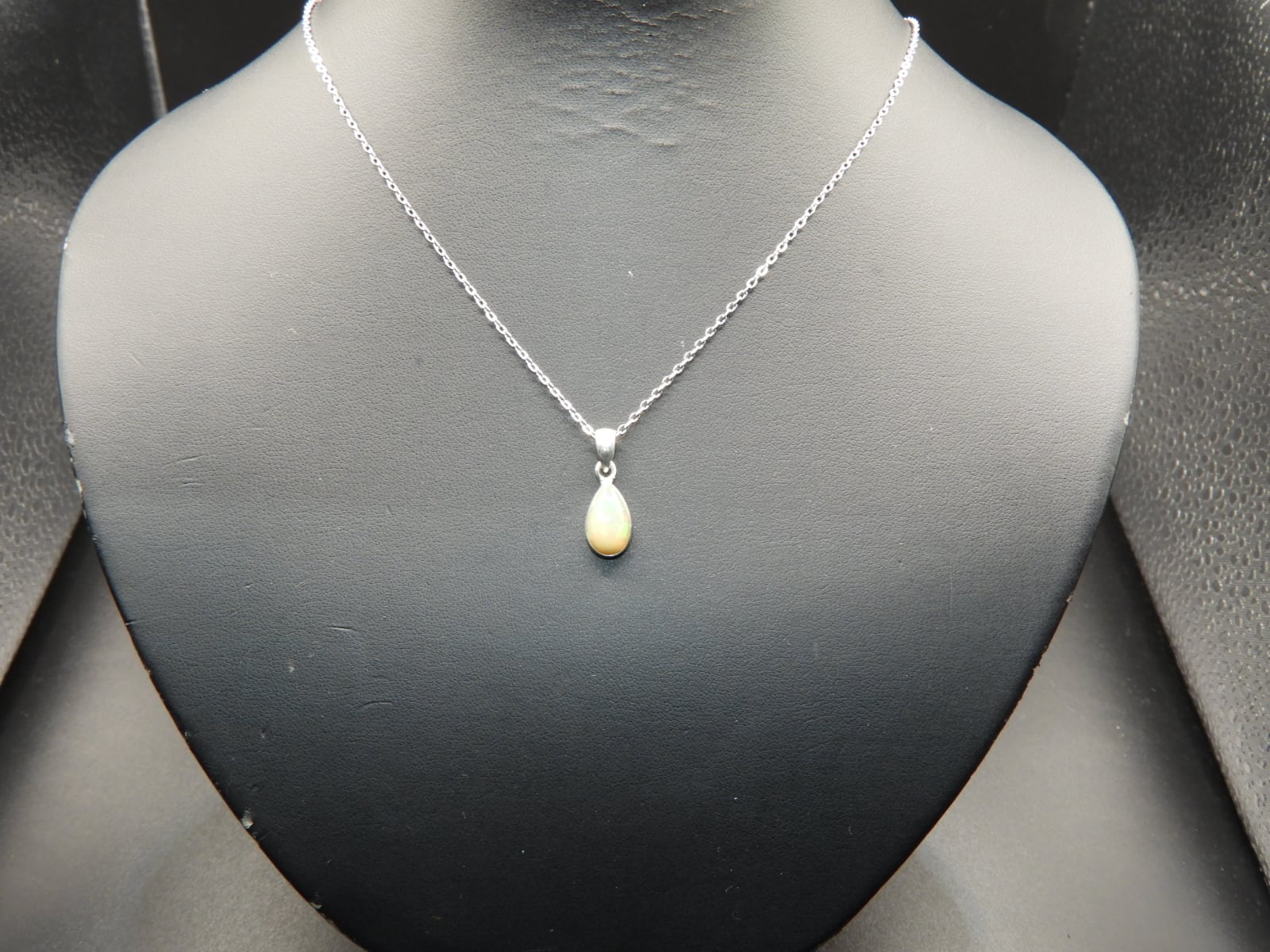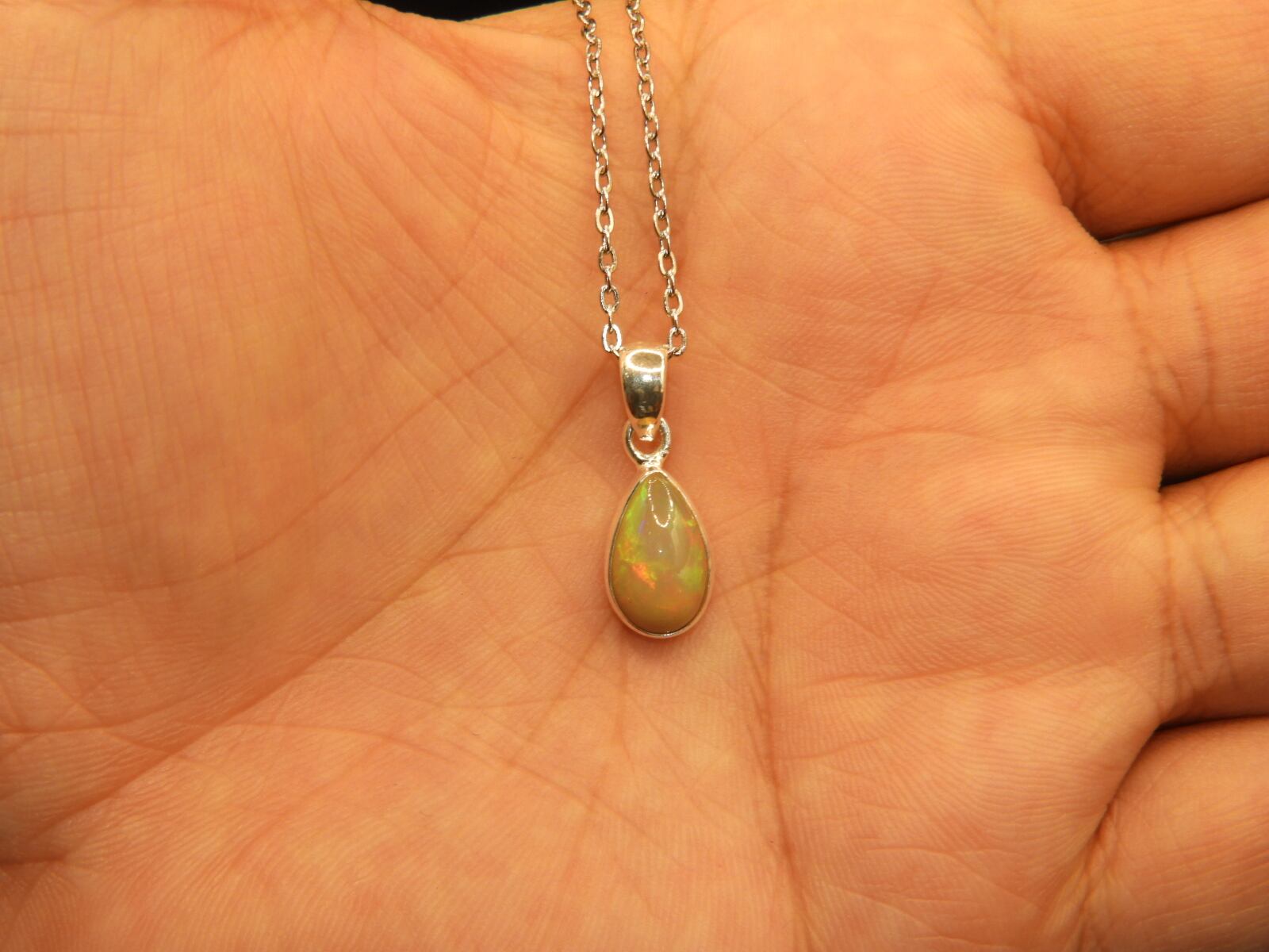 遊色効果のキラキラが魅了するオパールペンダントネックレス!インド職人の手作り!一点物 シルバー925天然石91