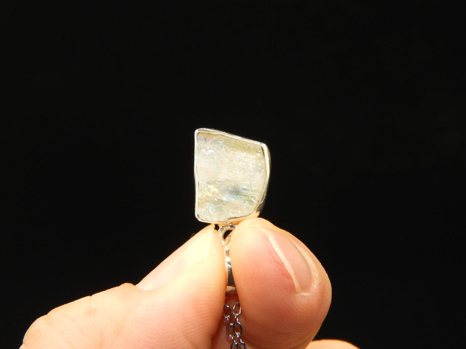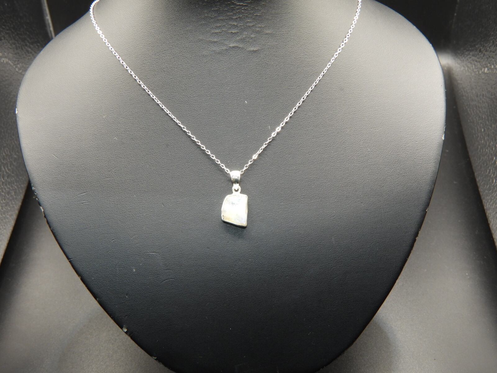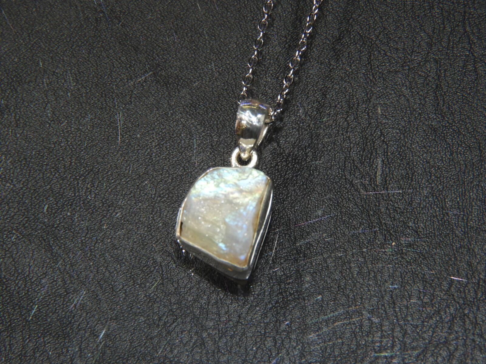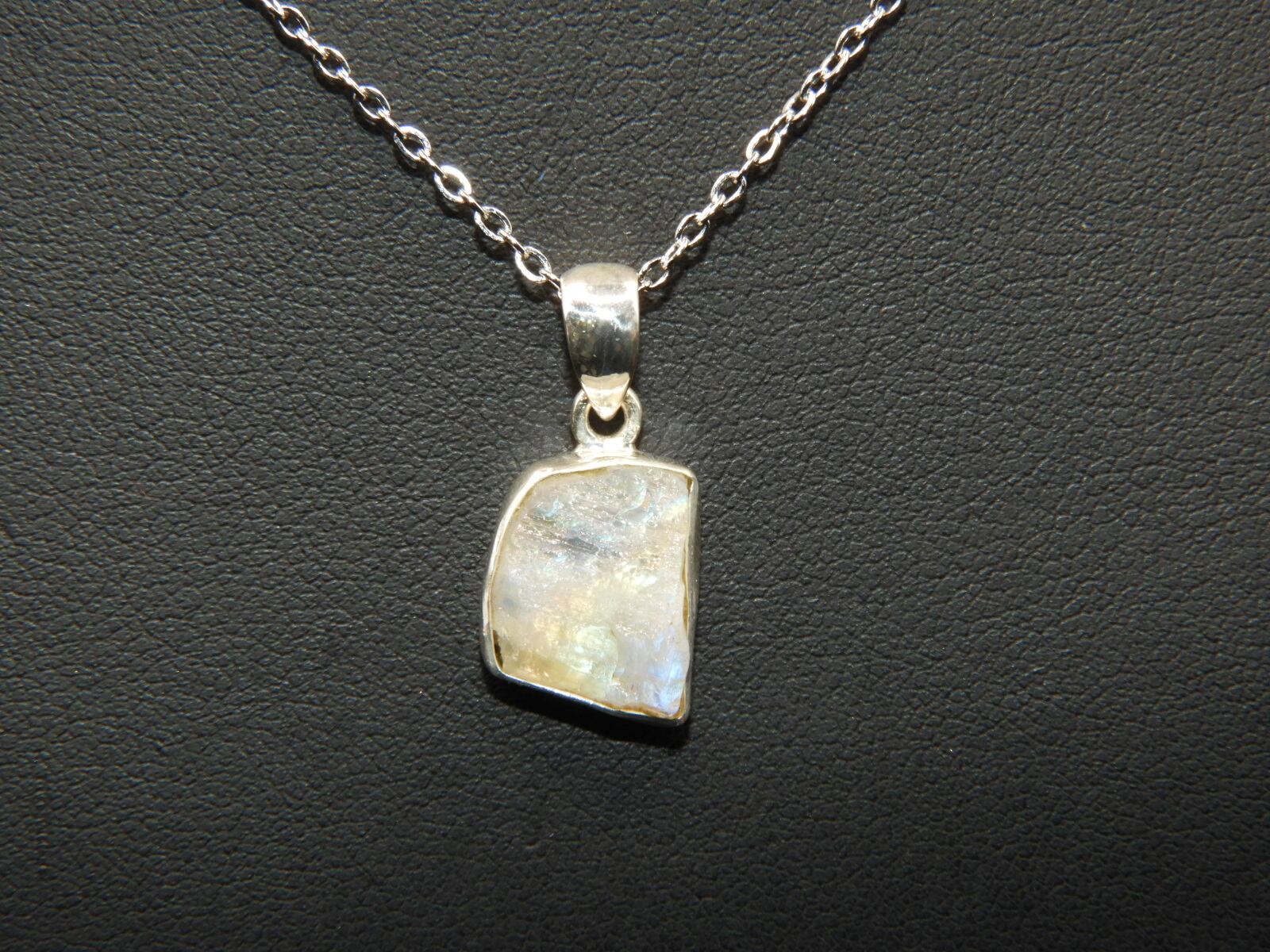 美しいレインボーシラー!ナチュラルホワイトラブラドライトのペンダントネックレス!インド職人の手作り!一点物 シルバー925天然石95