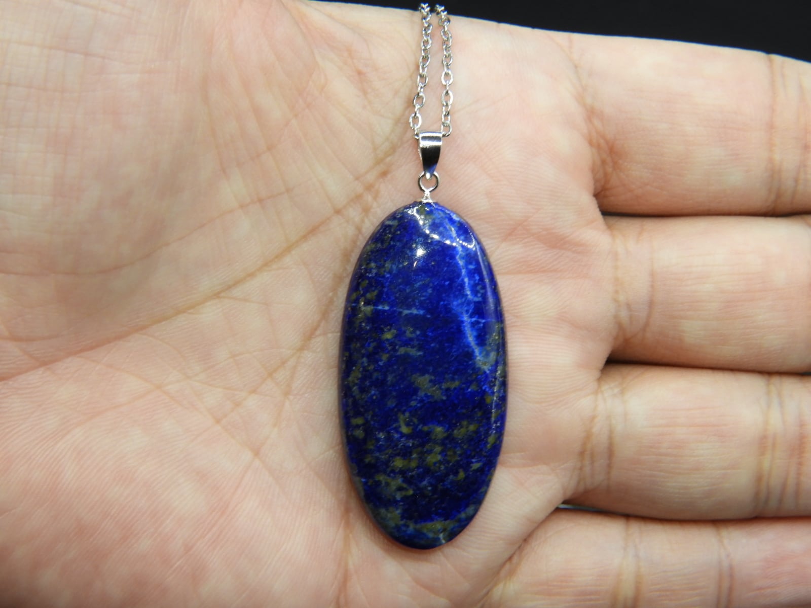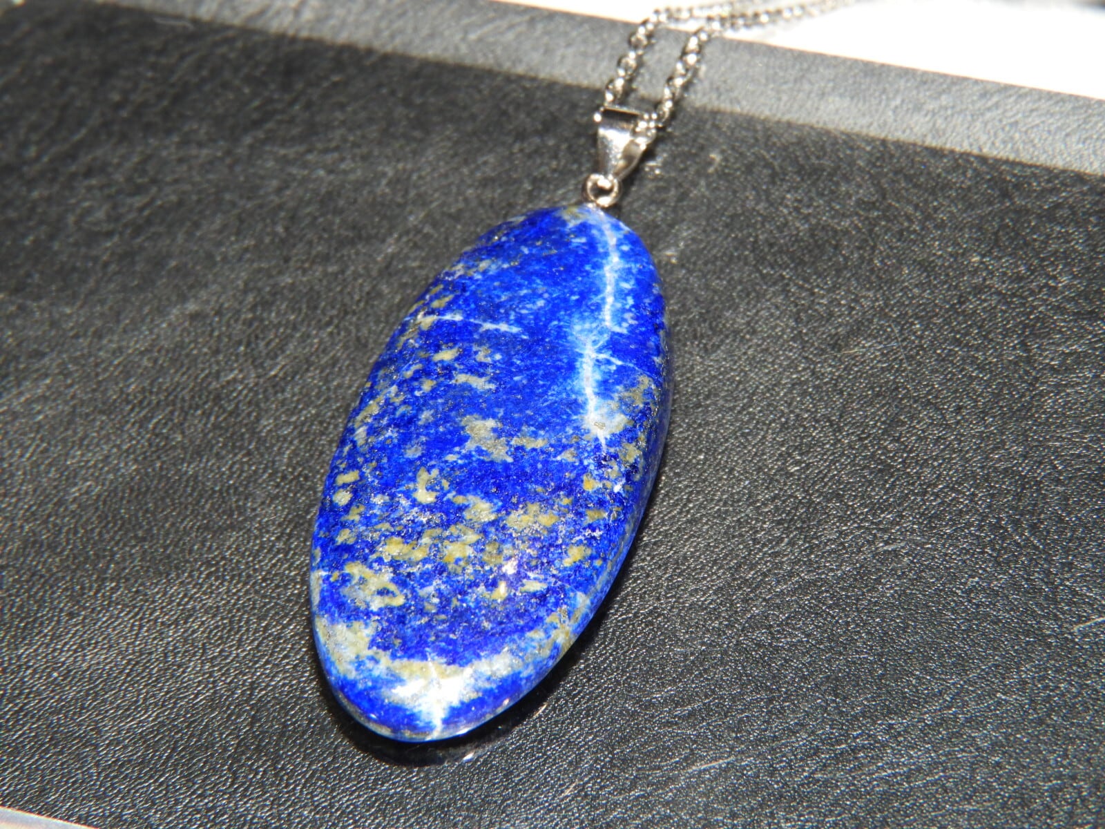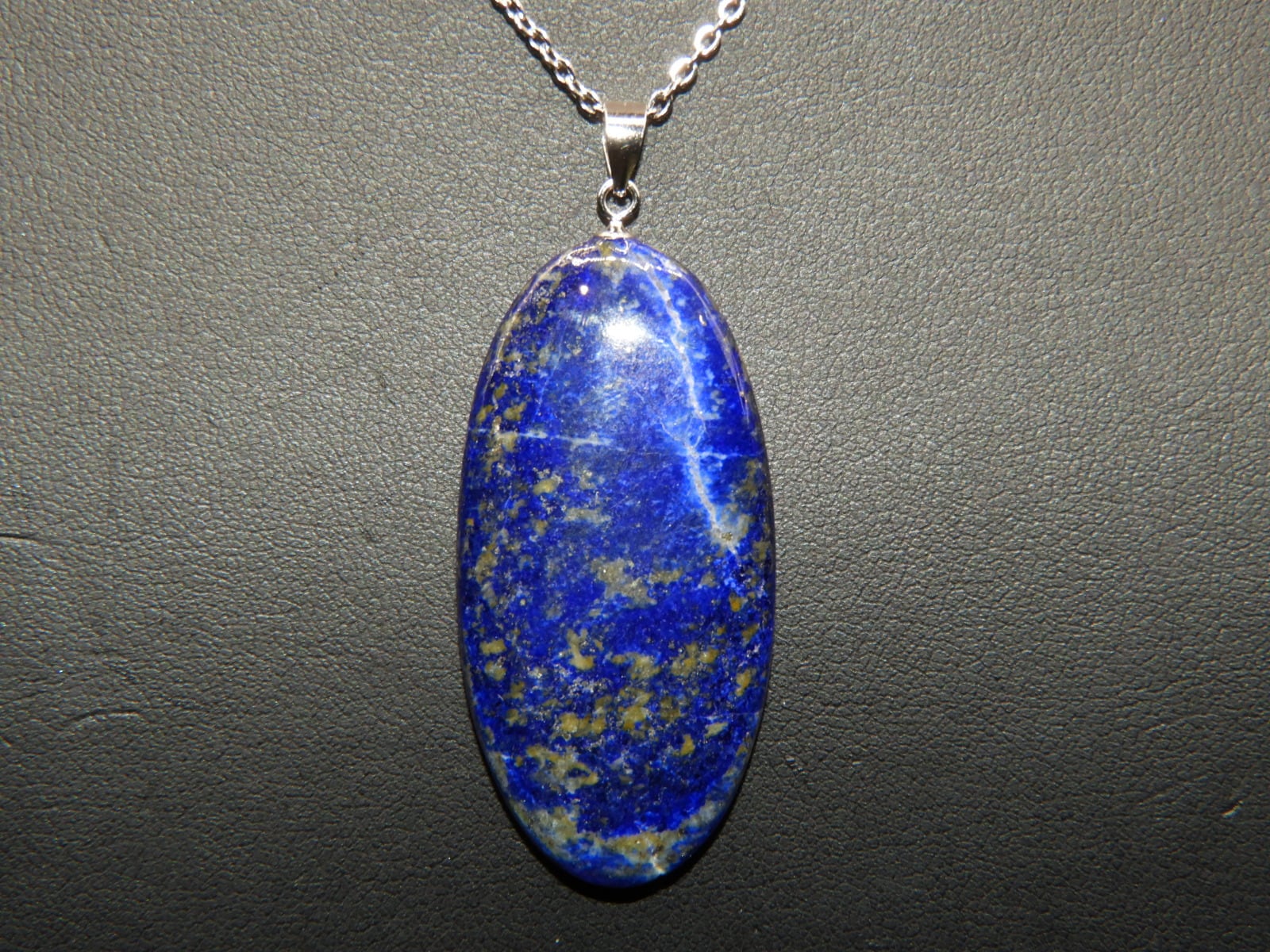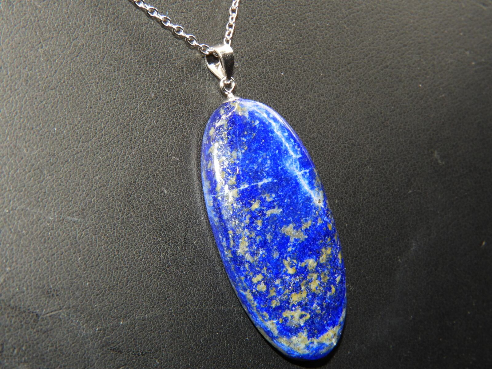 ラピスラズリの中でも貴重なパイライト入りのアフガニスタンの原石を削って作った贅沢なペンダントトップです。