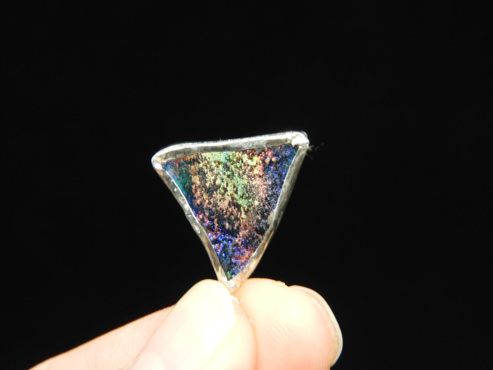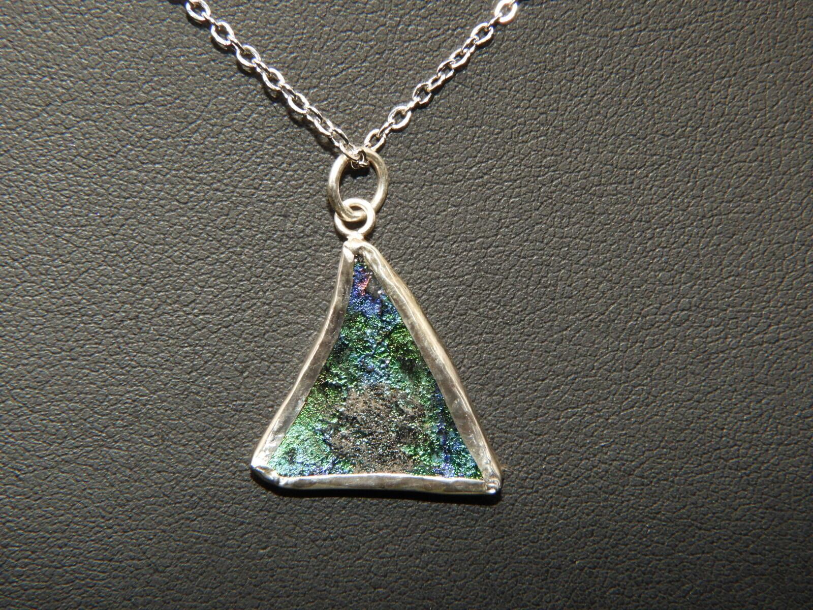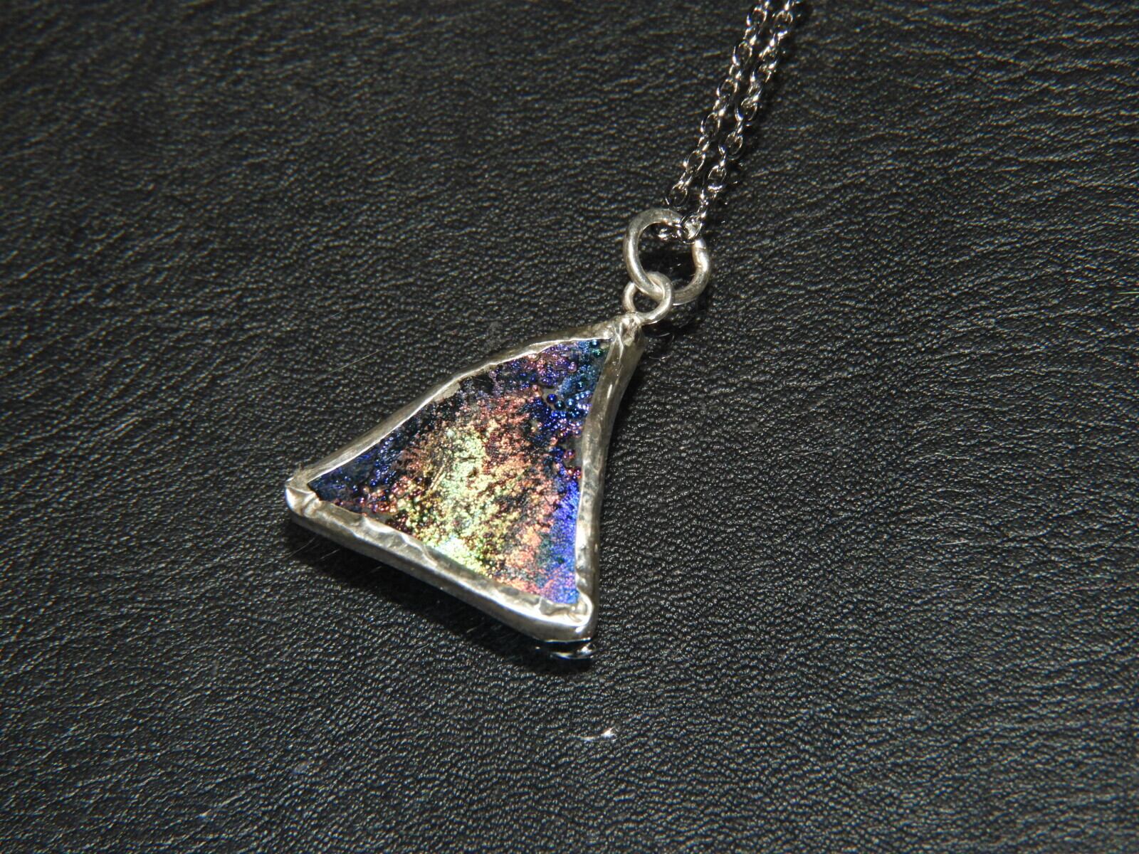 美しいレインボー☆古代の秘宝!時代を超えたアクセサリー!銀化ローマングラスのペンダント!一点物118