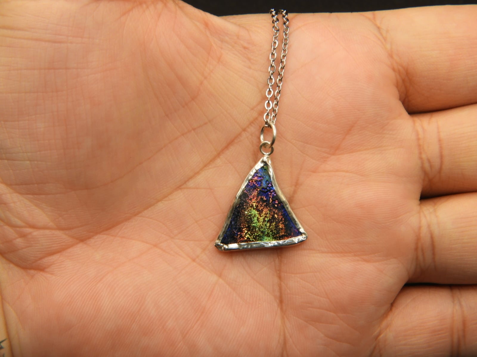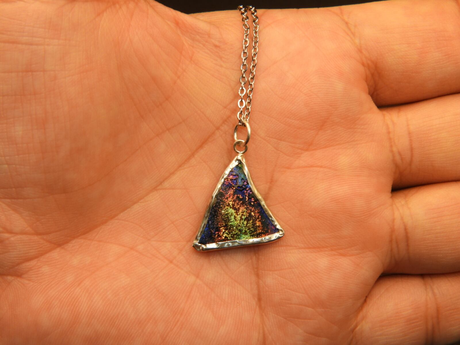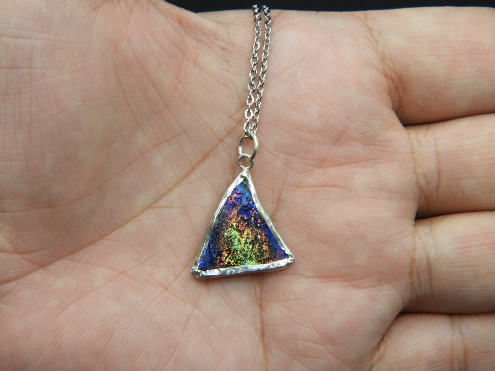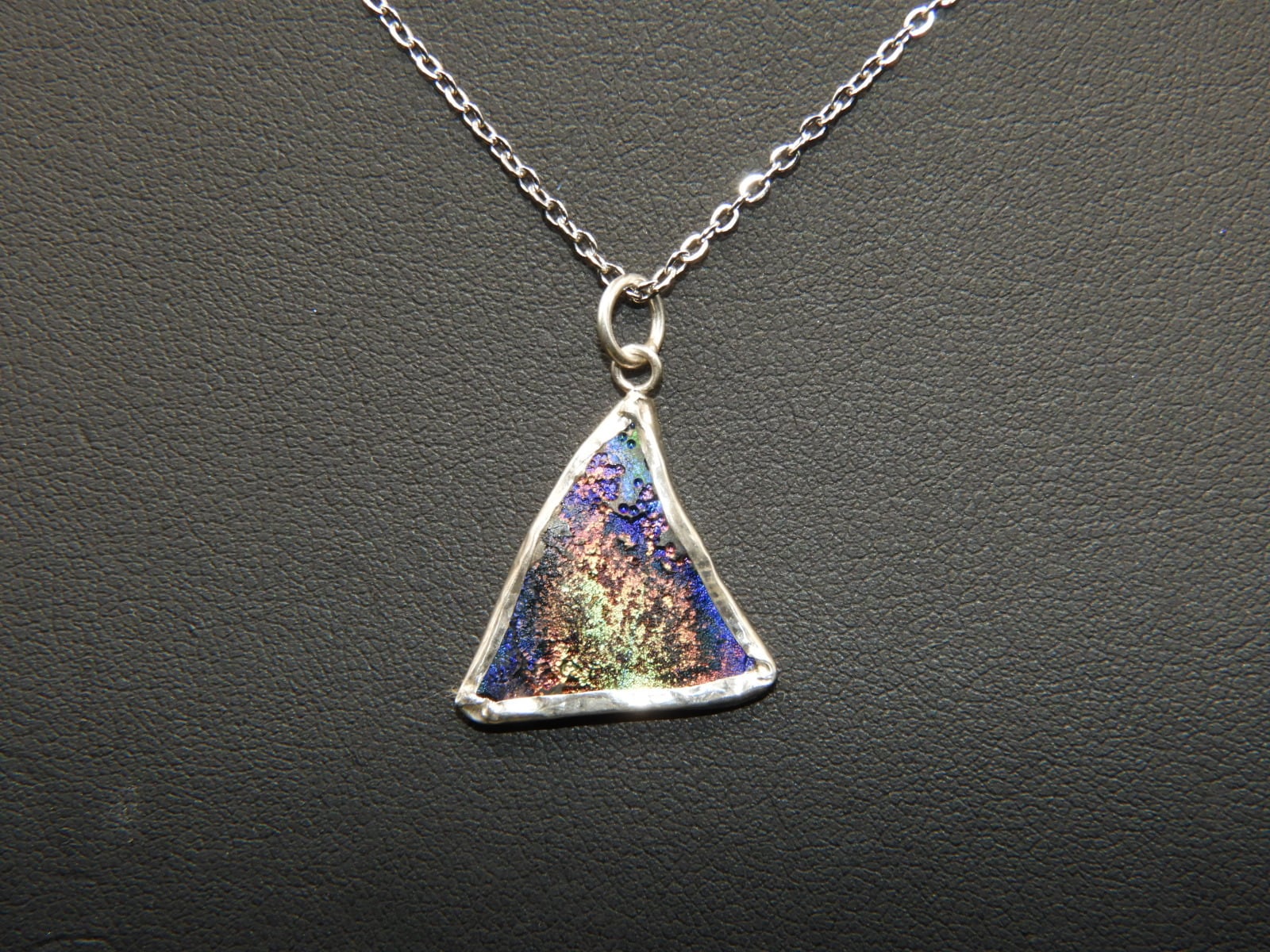 美しいレインボー☆古代の秘宝!時代を超えたアクセサリー!銀化ローマングラスのペンダント!一点物118