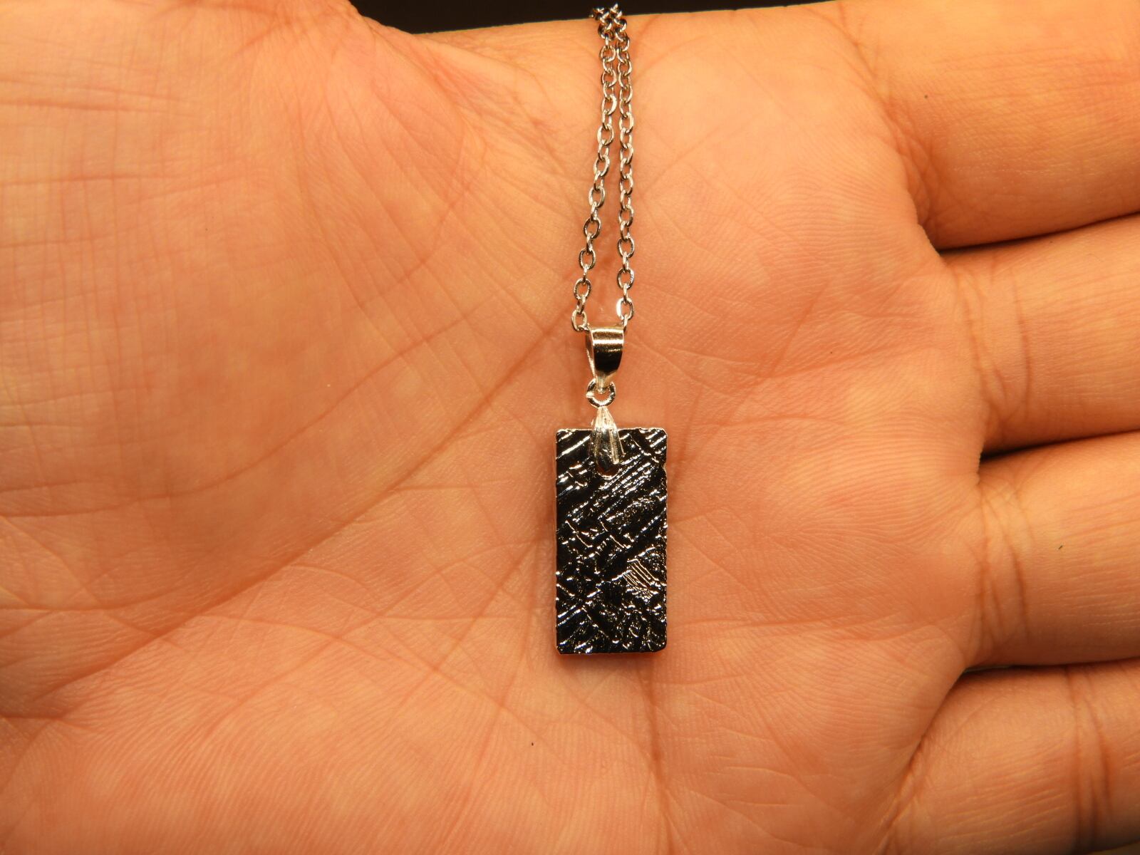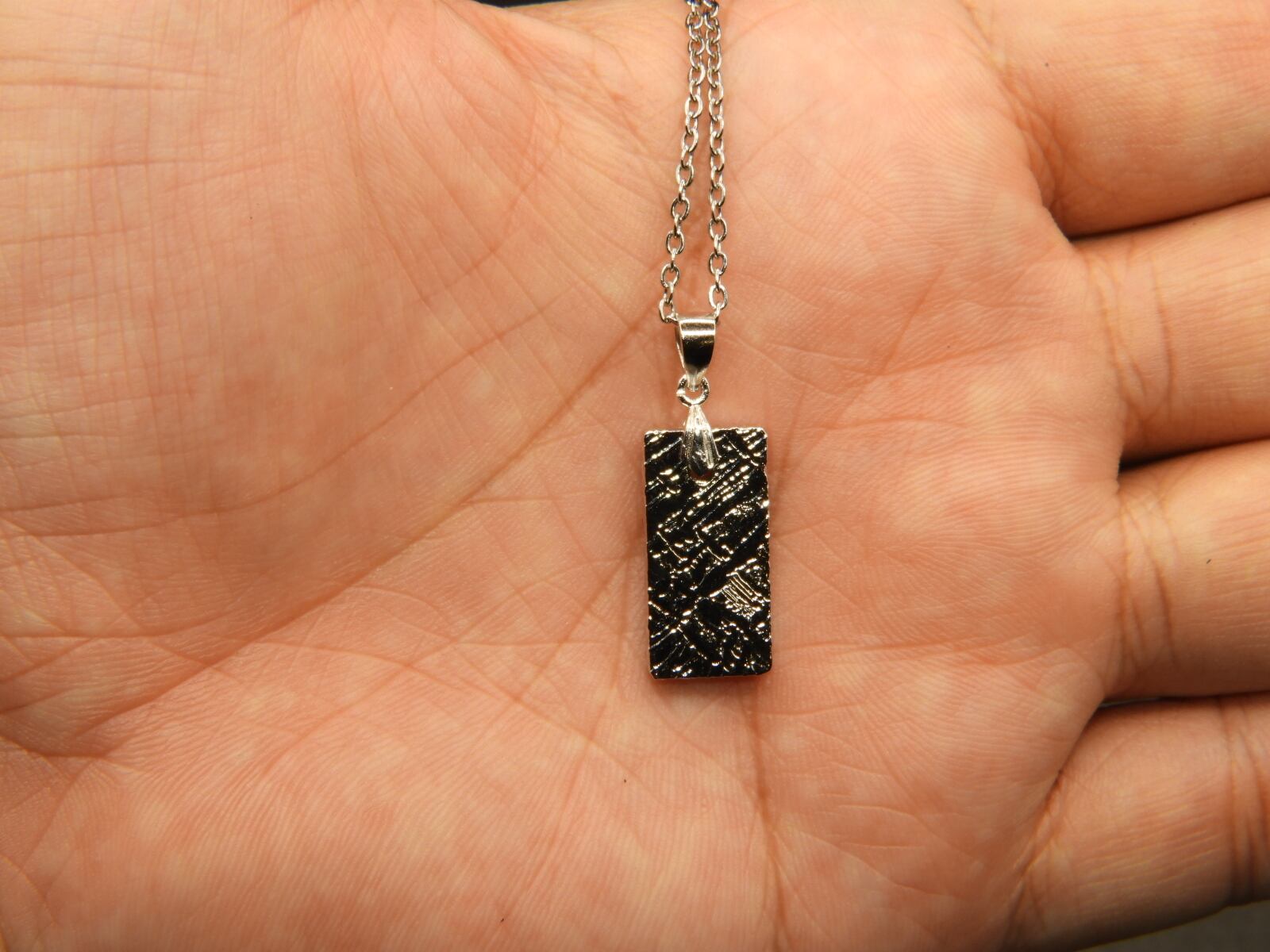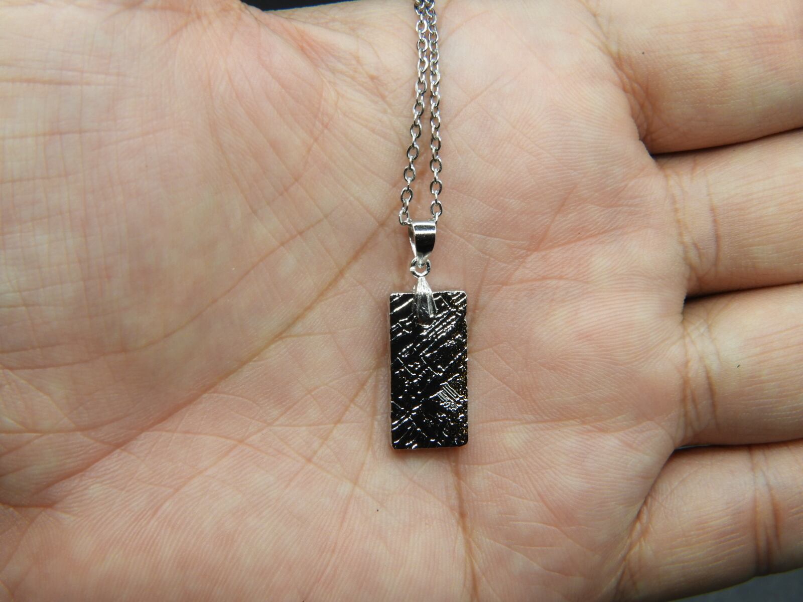 宇宙よりの使者!パラサイト隕石のセイムチン隕石の原石をつかってペンダントにしました!そして、他店にない強みとして隕石を当店でエッチング作業をした後、ロジュームコーティングをしてアクセサリーにしました!