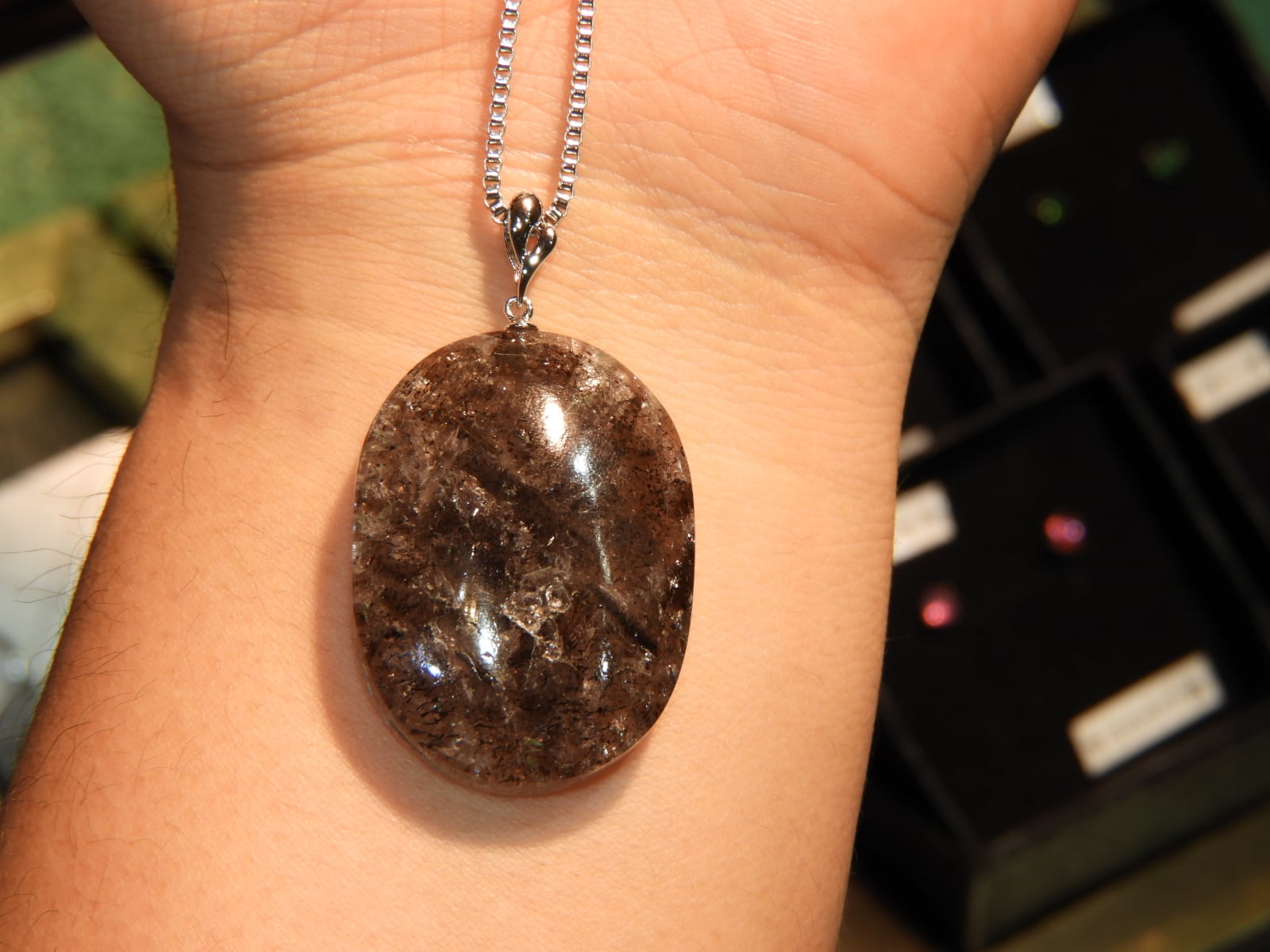 包容物としてはレピドクロサイト、ゲーサイトがはいっており、ファーデン、スモーキークォーツ、クリアルチルも入っております。なんとレインボーまで見えますよ!