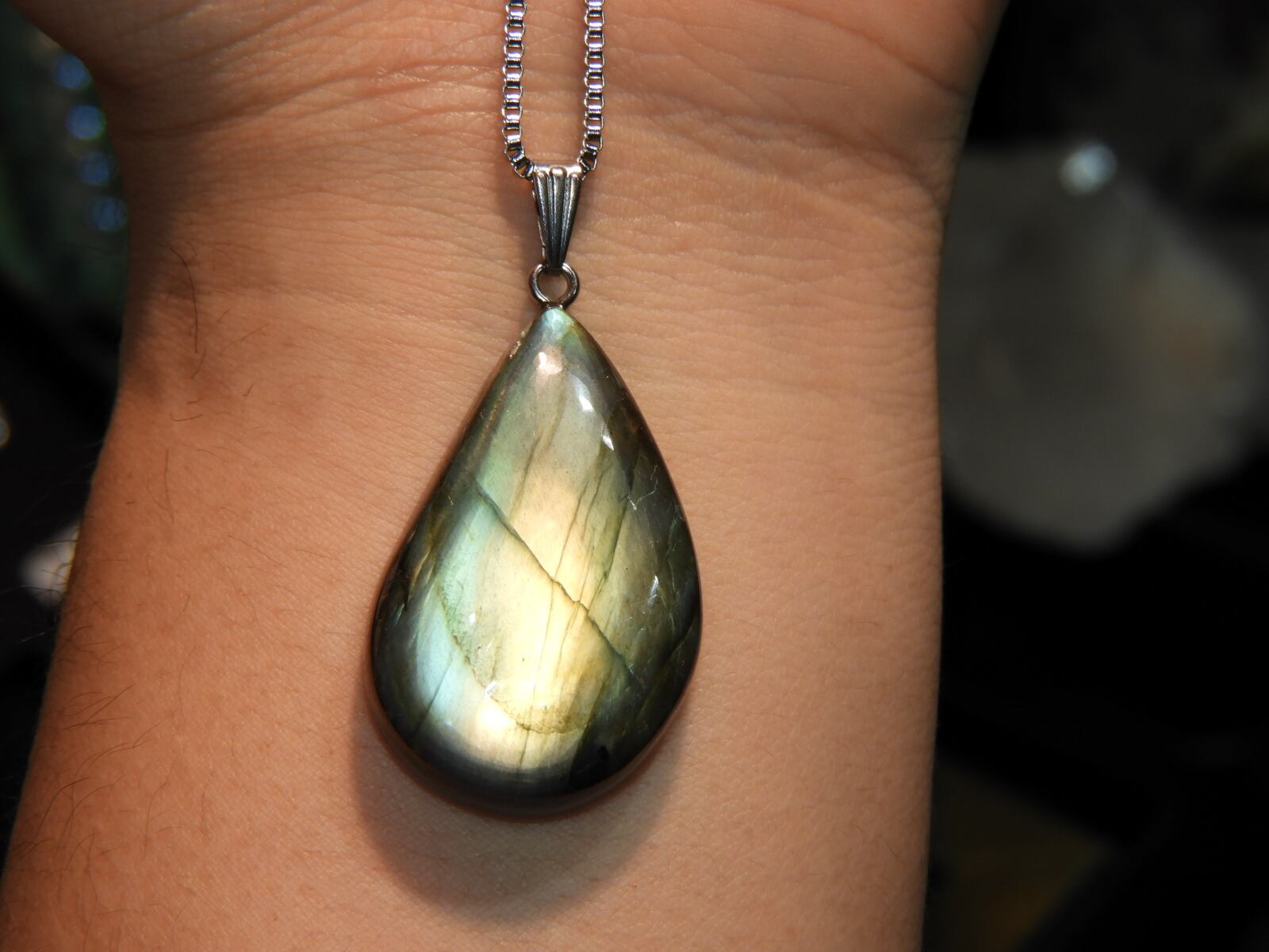 #ラブラドライト #スペクトルライト #癒し #福岡手作り #ゴツイズム岡田 #福岡の隕石王子 #純天然アクセサリー #プレゼント #秘訣 #手作りストーン #手研磨ペンダント #岡田と言う男 #宇宙 #シルバーアクセサリー #チャクラ #マダガスカル