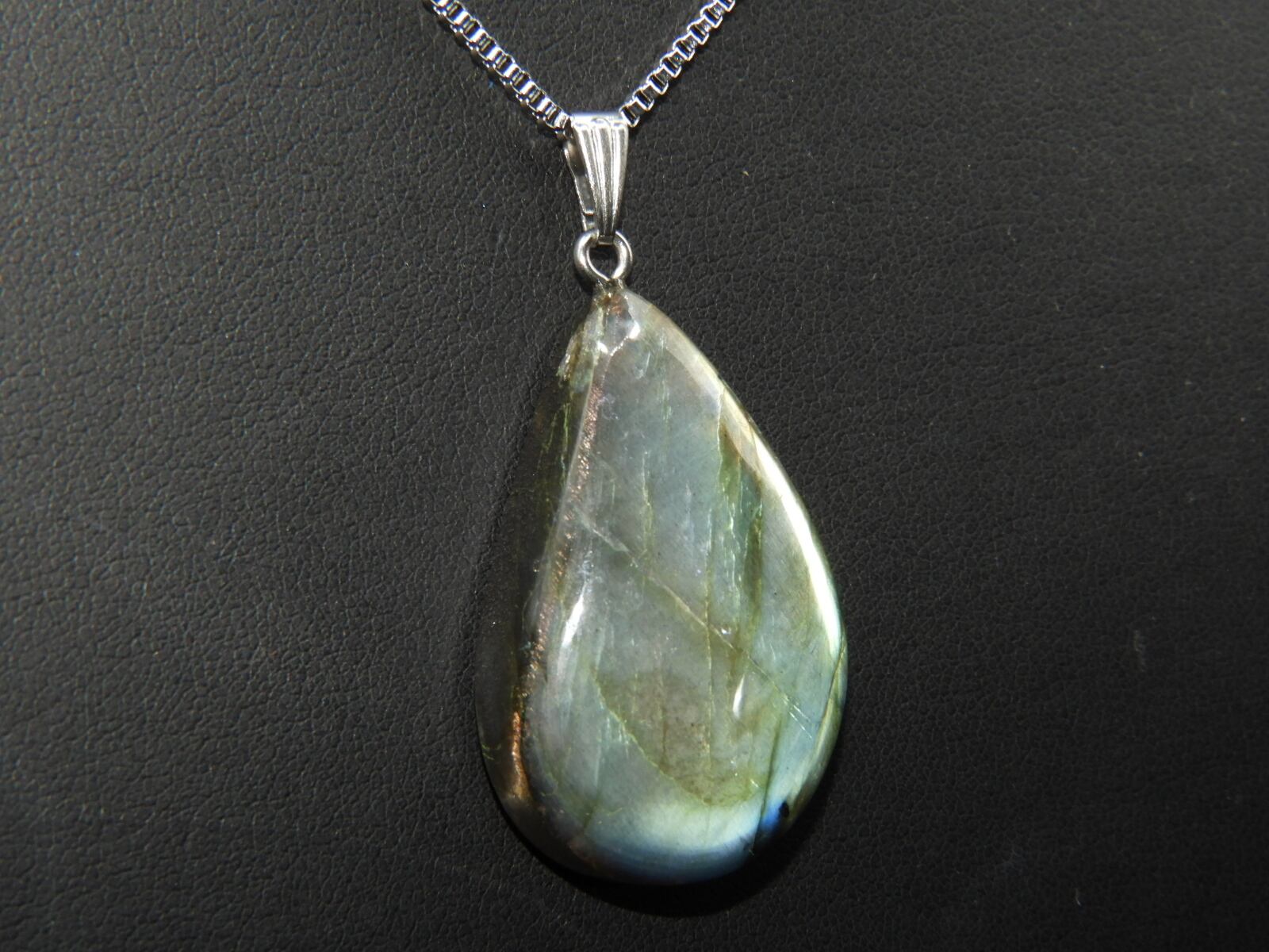 密かに人気!!神秘的なラブラドライトの最高級の原石を削ってペンダントにしました。見る方向で色が変わるのは最高です☆