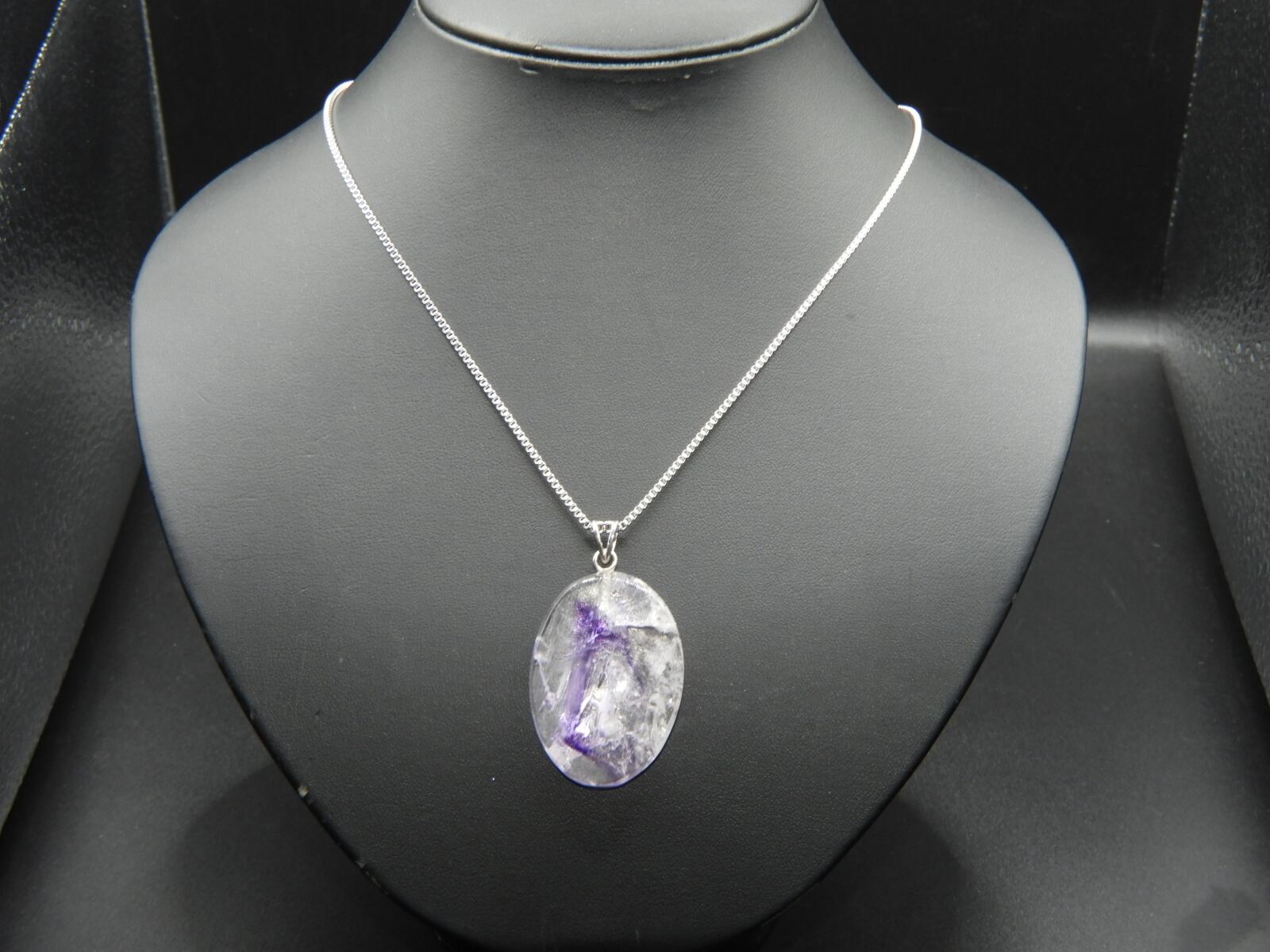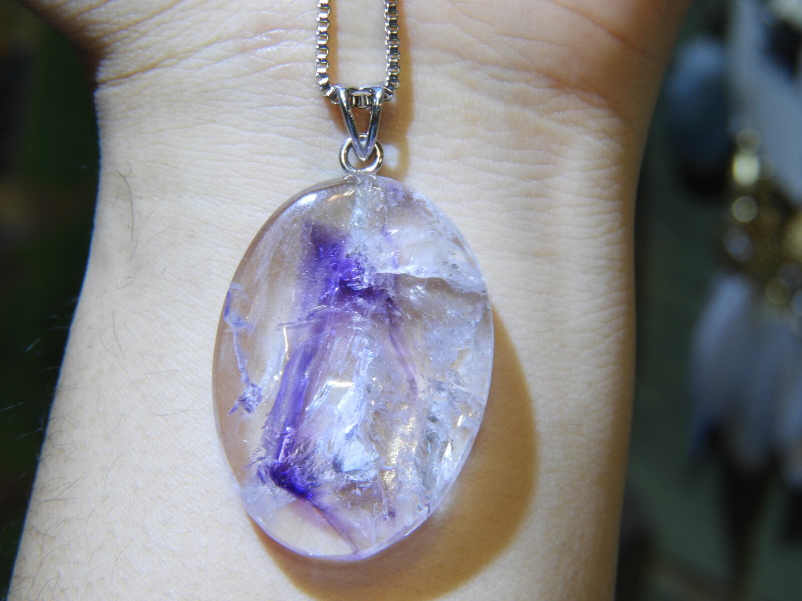 手研磨手作り品!自然の模様が最高!アメジストエレスチャルのネックレス! 天然石36