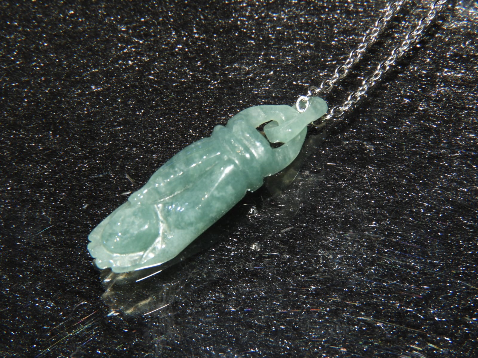 そんな貴重な翡翠を原石から削り取り、研磨をしてペンダントに作り替えました!