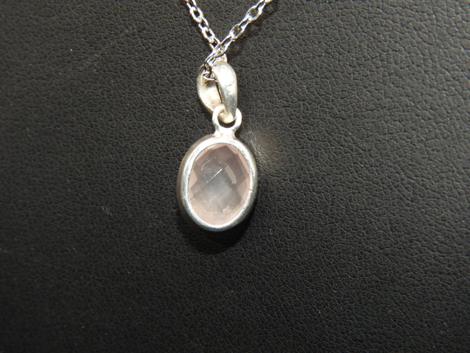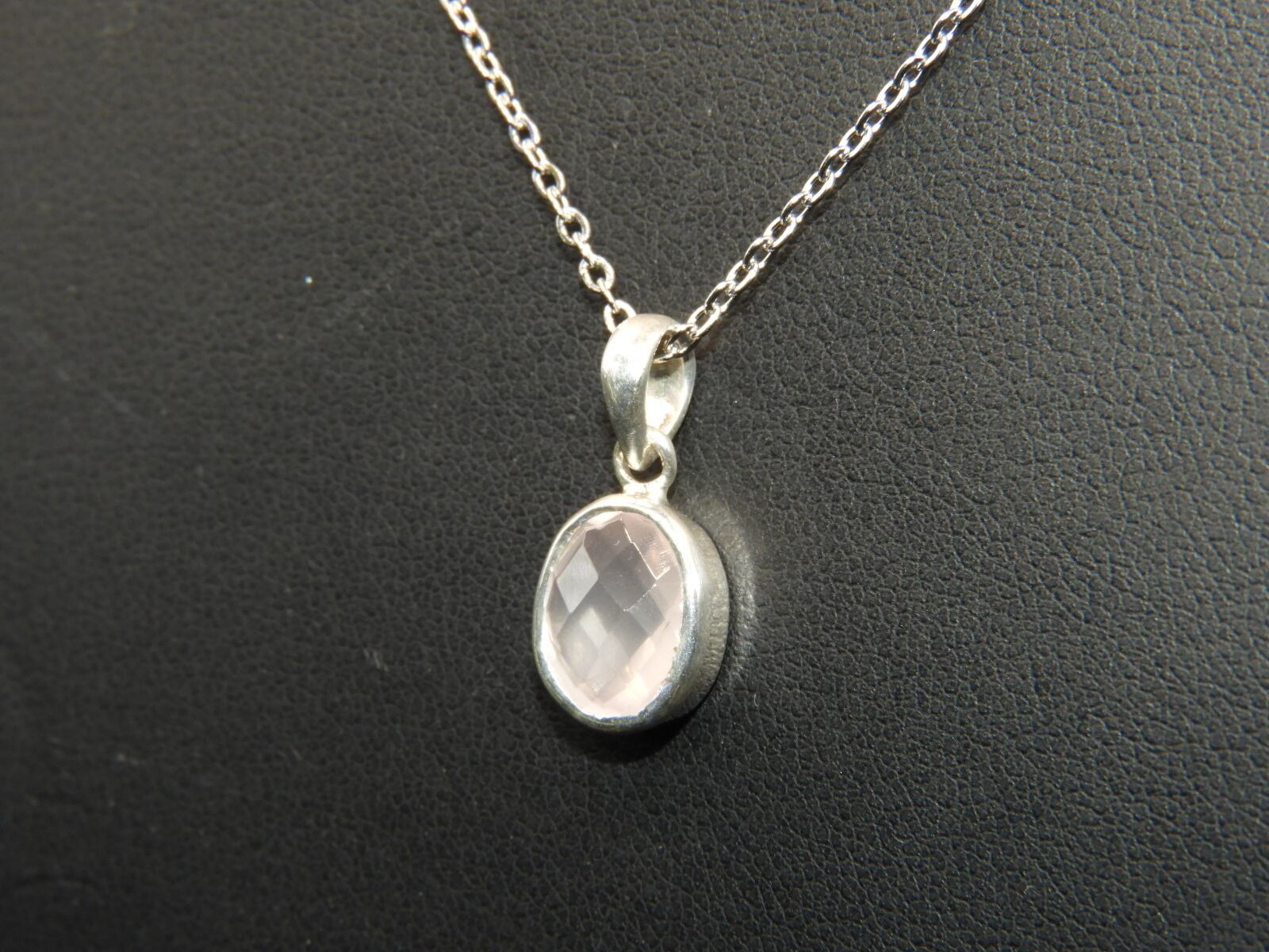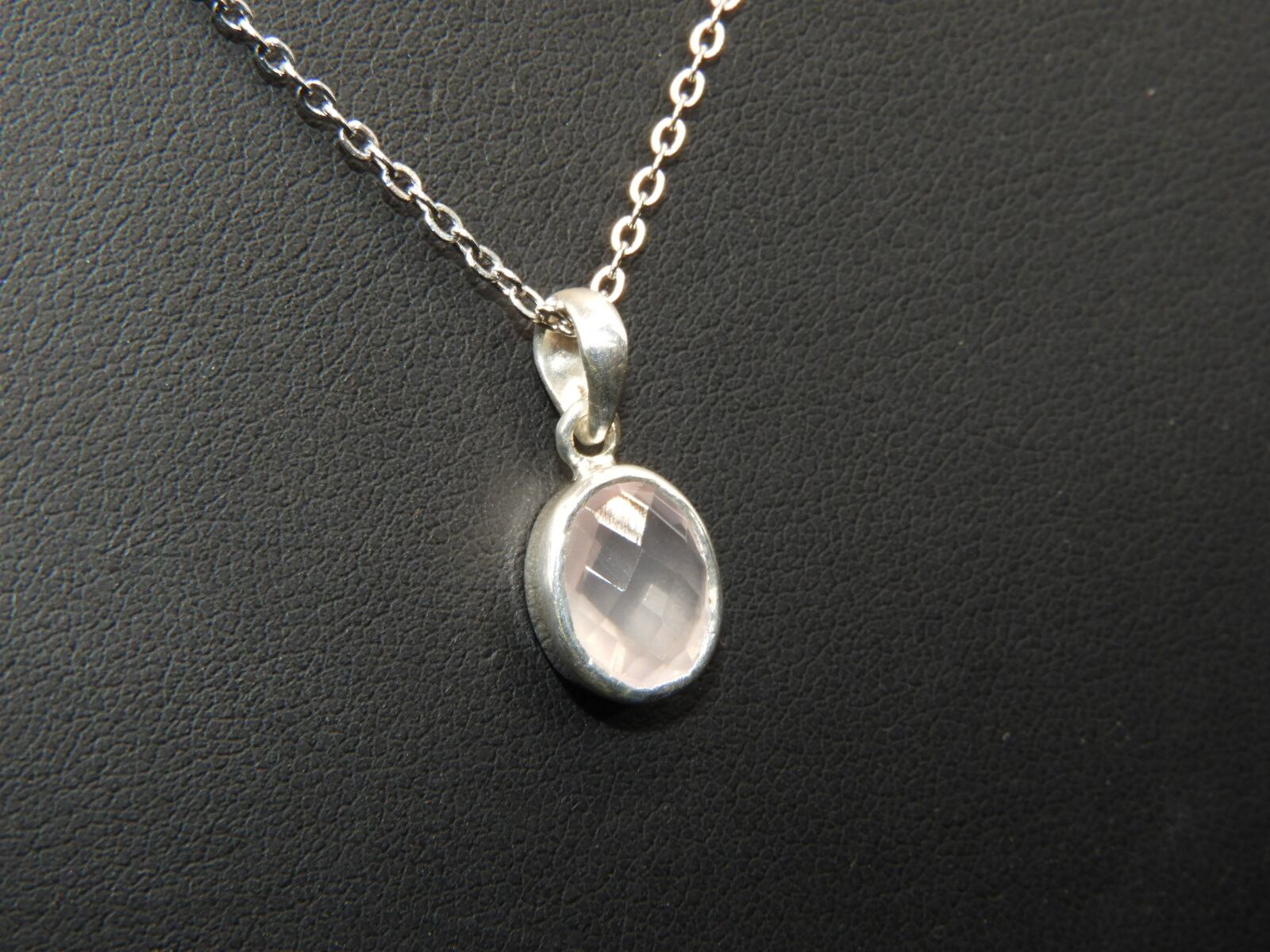 やさしいピンク☆インドの職人の手作り!宝石質のローズクォーツのシルバー925ペンダントネックレス! 天然石75