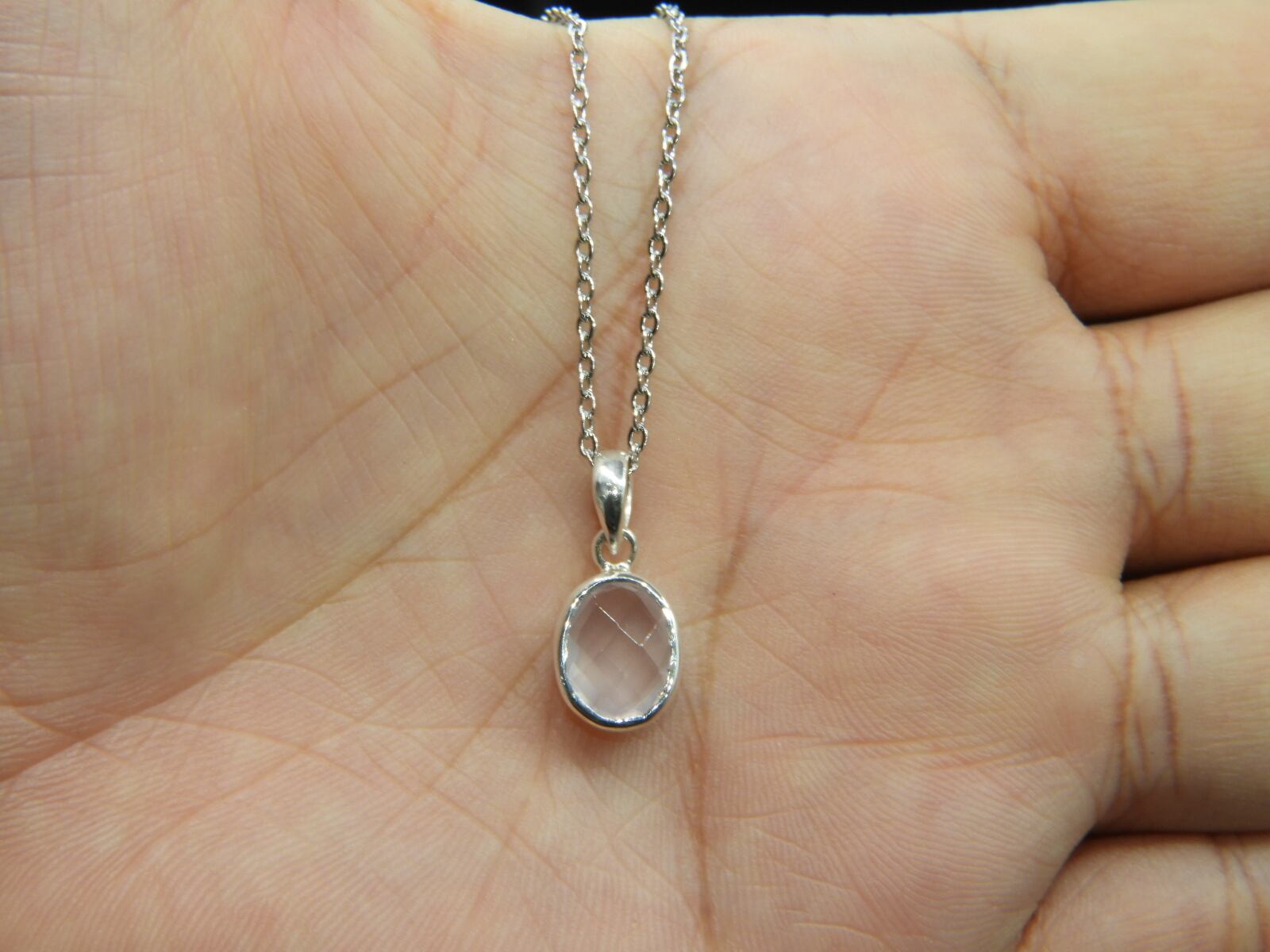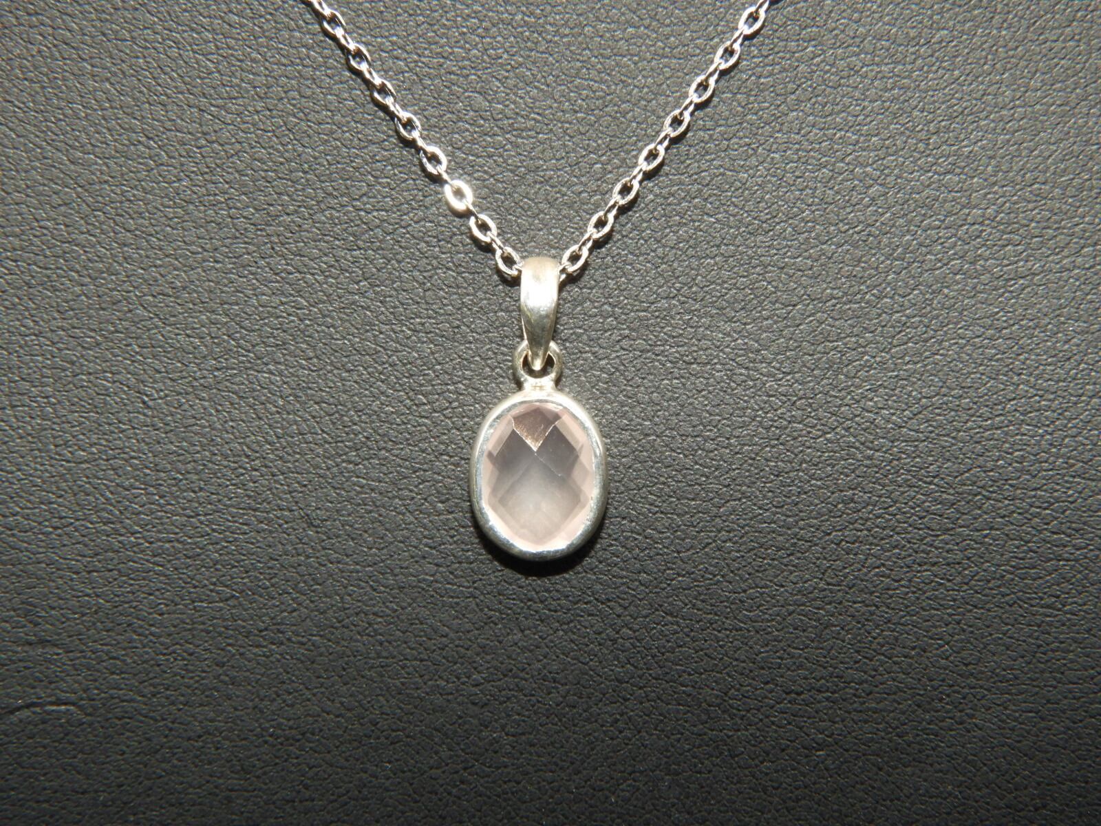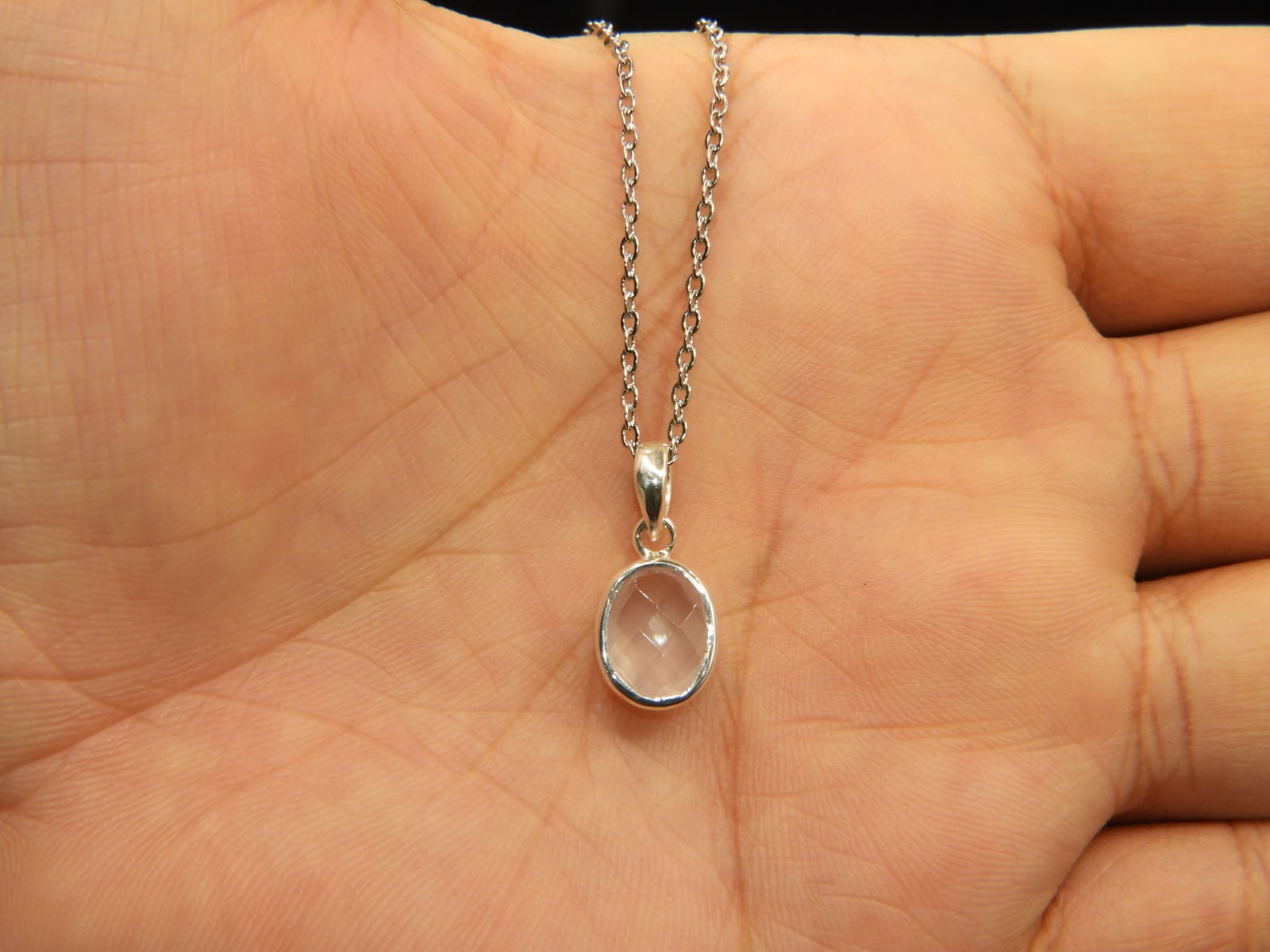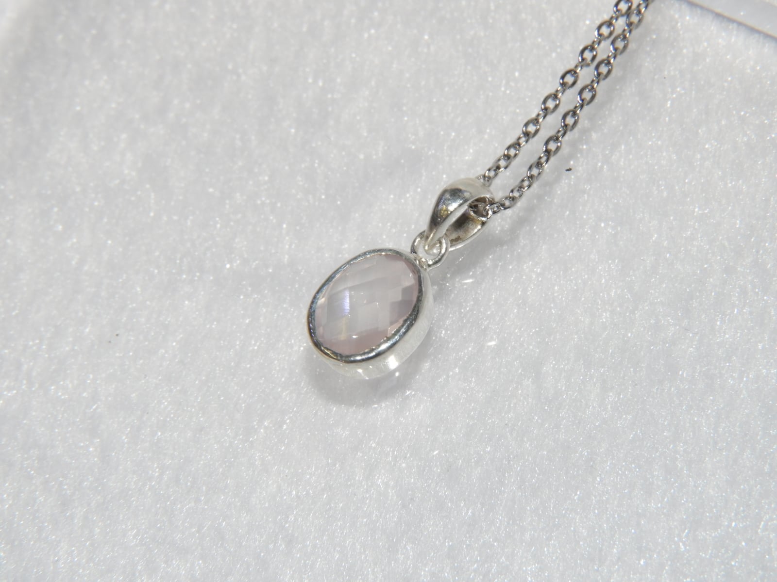やさしいピンク☆インドの職人の手作り!宝石質のローズクォーツのシルバー925ペンダントネックレス! 天然石75