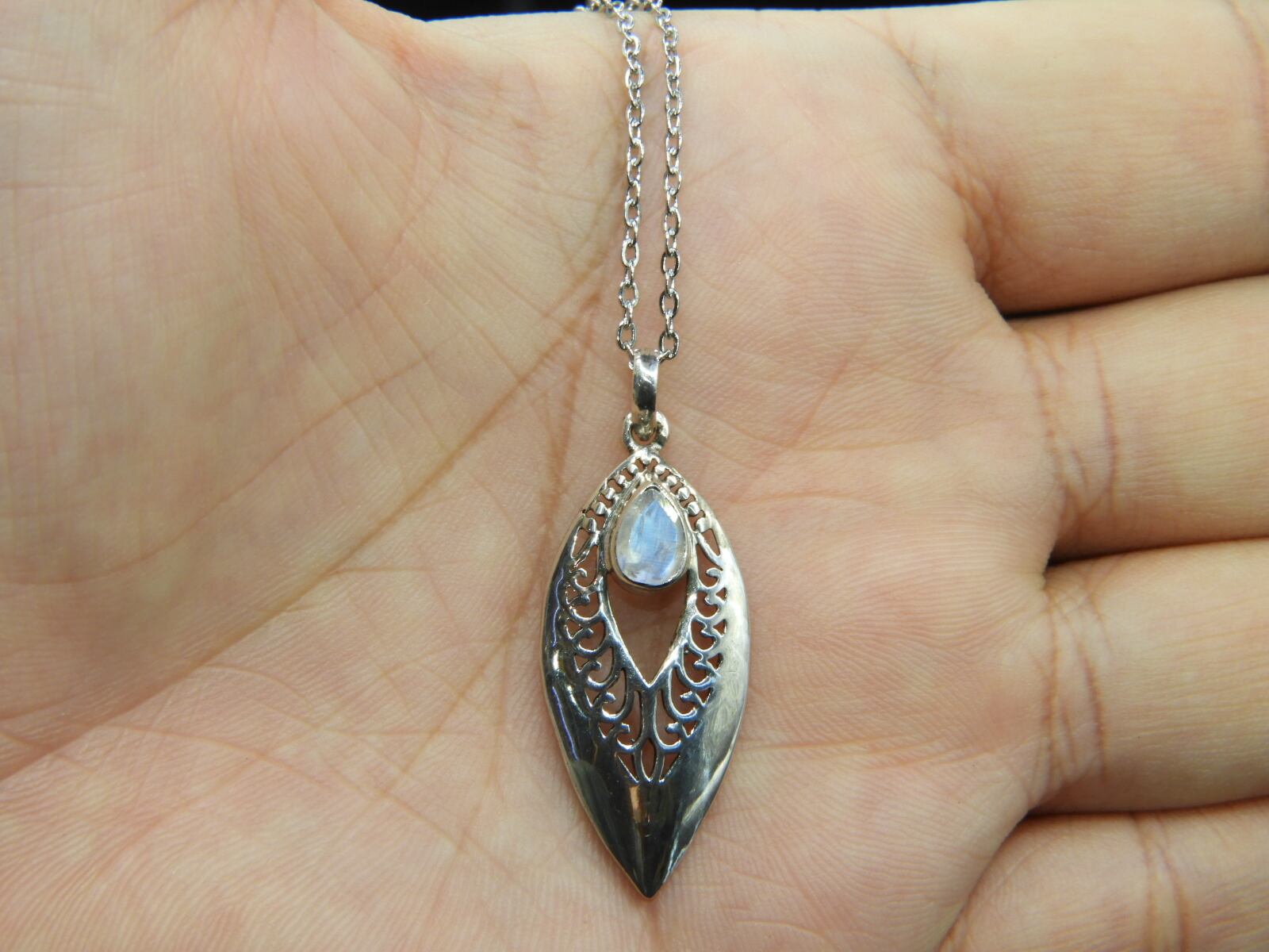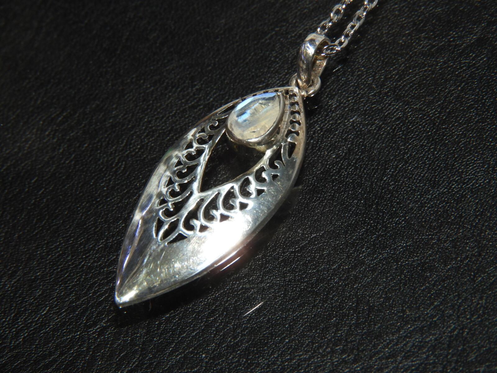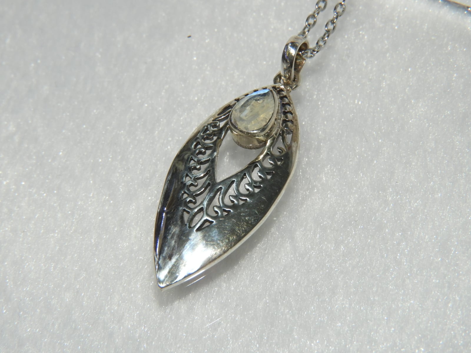 魅惑のシラー!色が変わる!☆インドの職人の手作り!宝石質のホワイトラブラドライトのシルバー925ペンダントネックレス! 天然石76