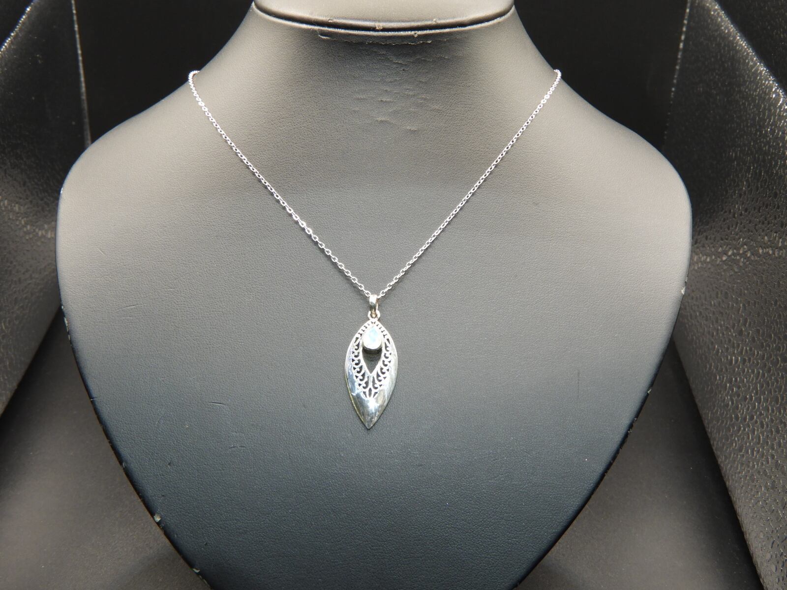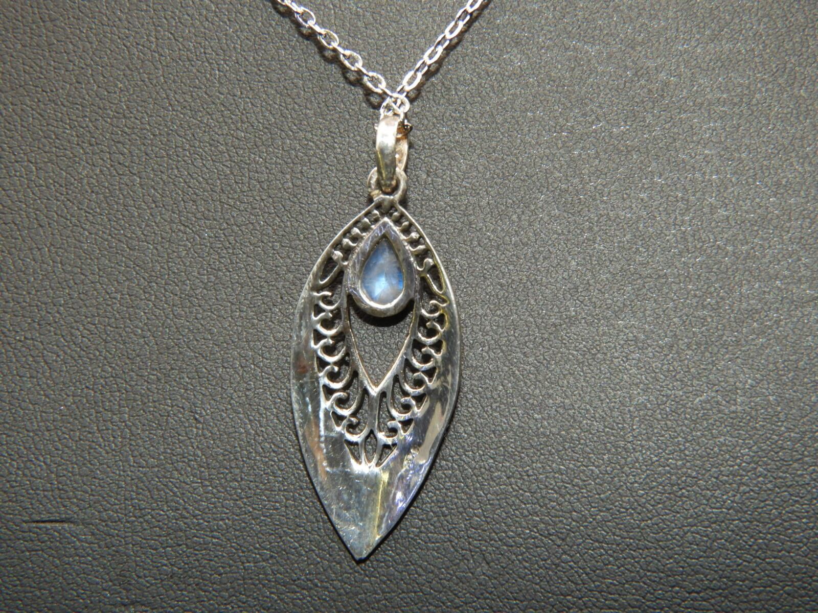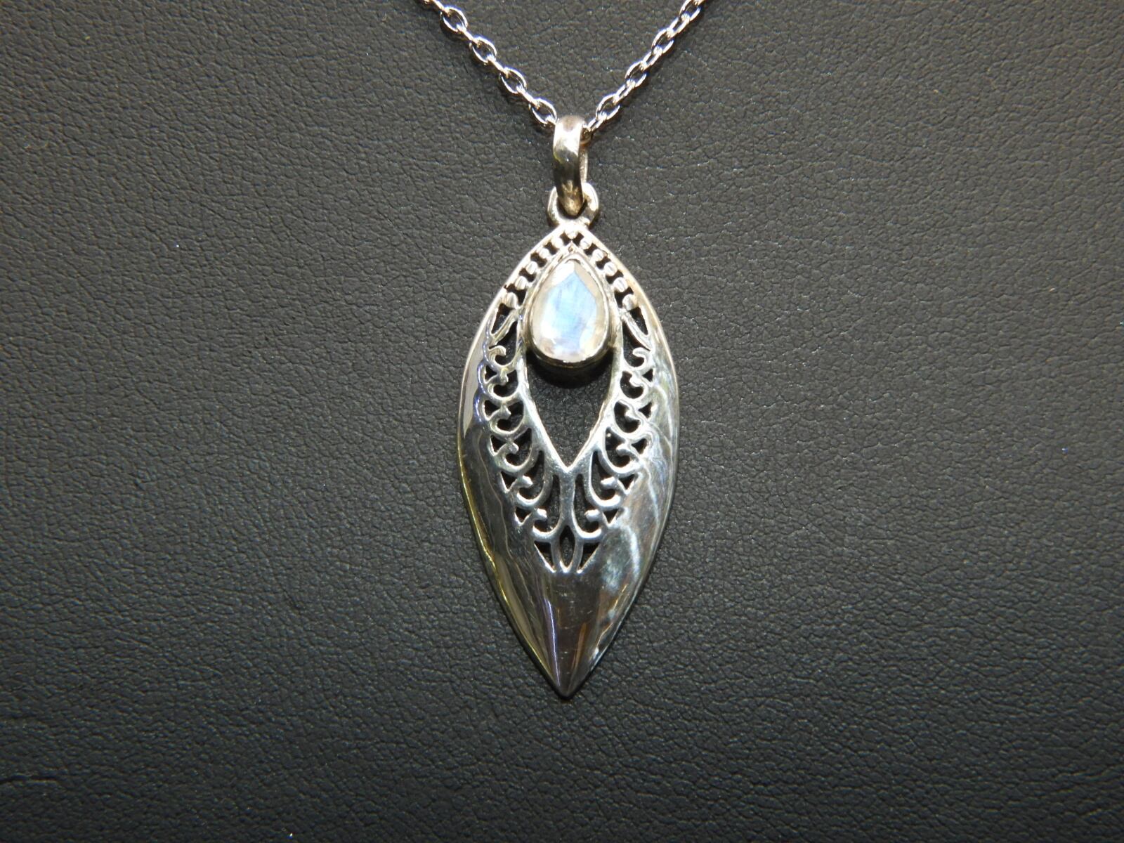 魅惑のシラー!色が変わる!☆インドの職人の手作り!宝石質のホワイトラブラドライトのシルバー925ペンダントネックレス! 天然石76
