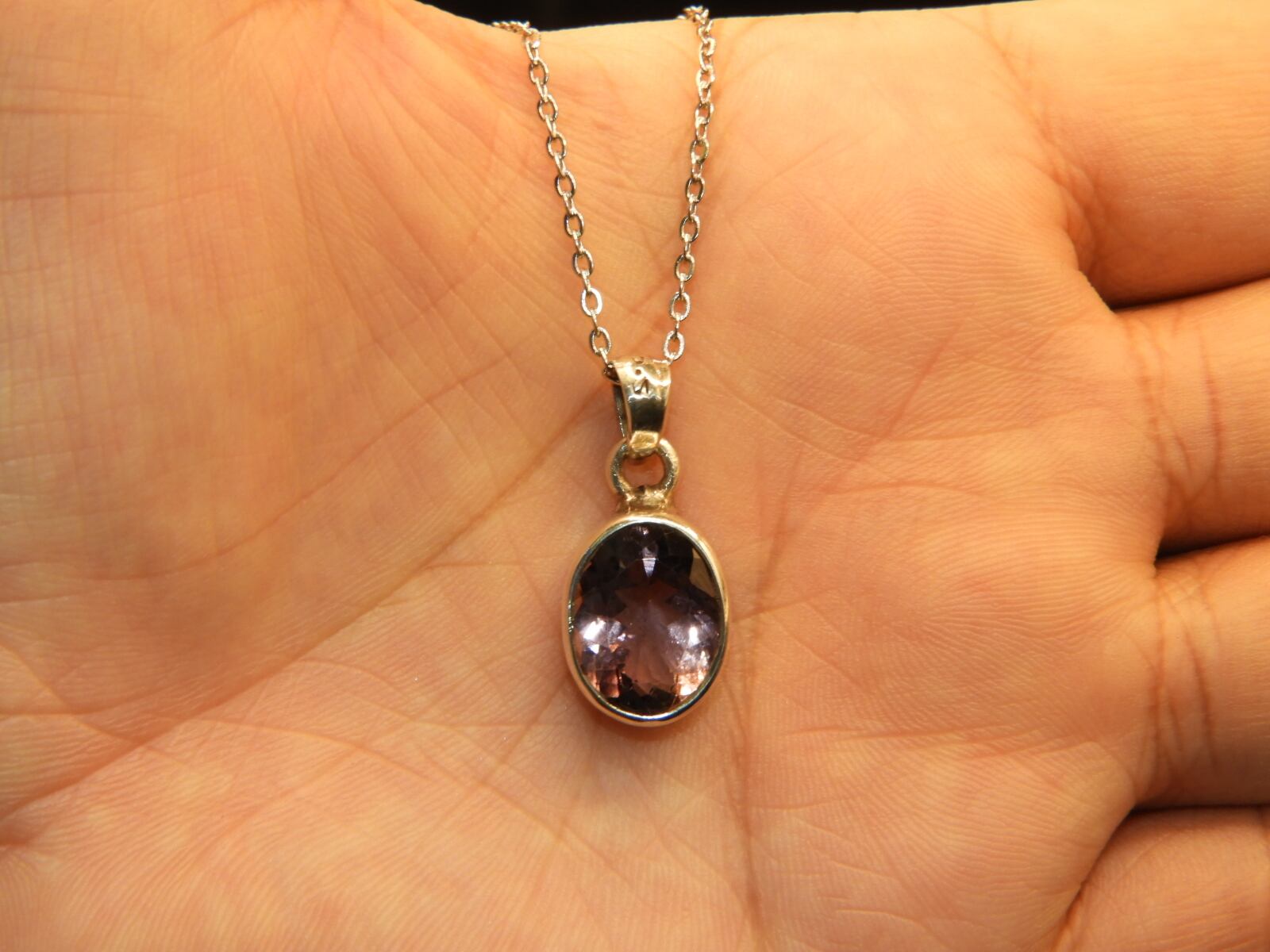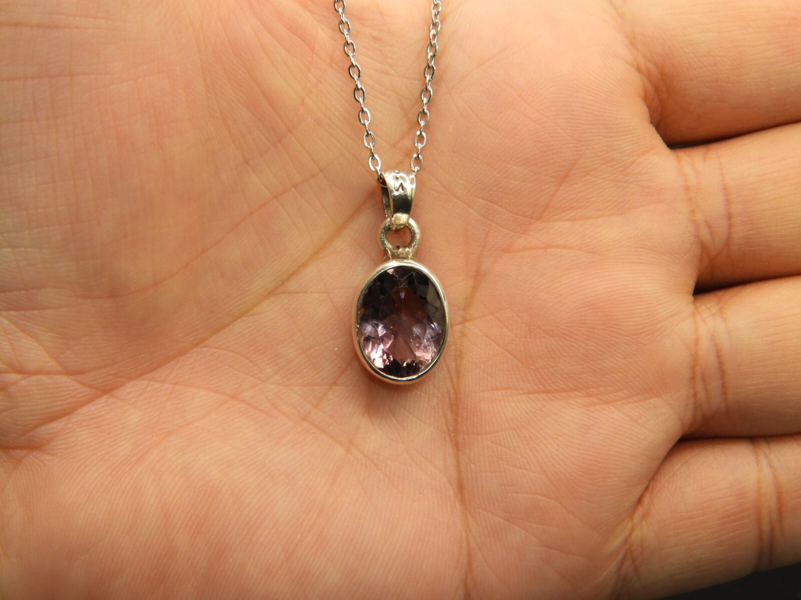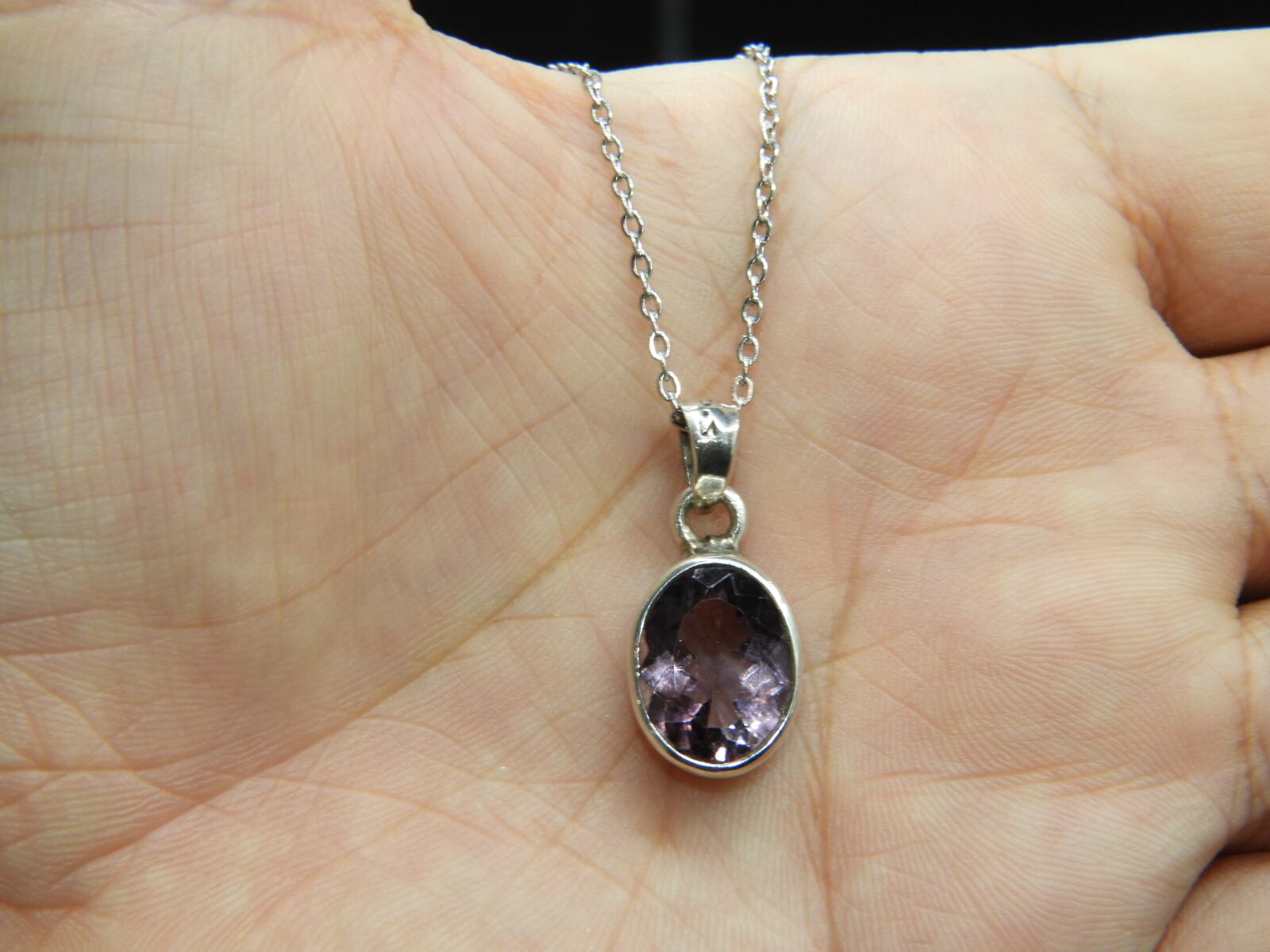 美しいラベンダーアメジスト☆インドの職人の手作り!宝石質のアメジストのシルバー925ペンダントネックレス! 天然石77