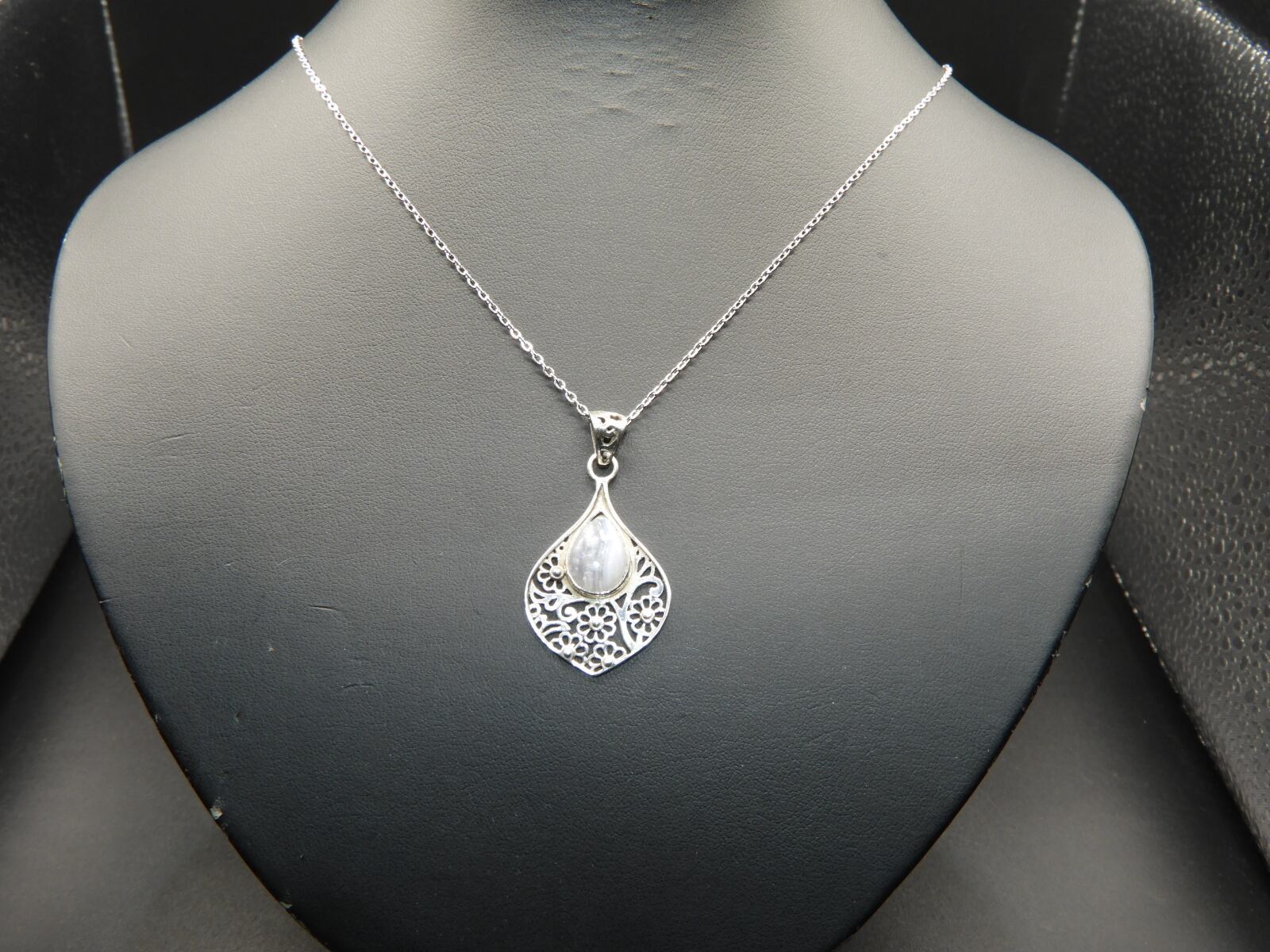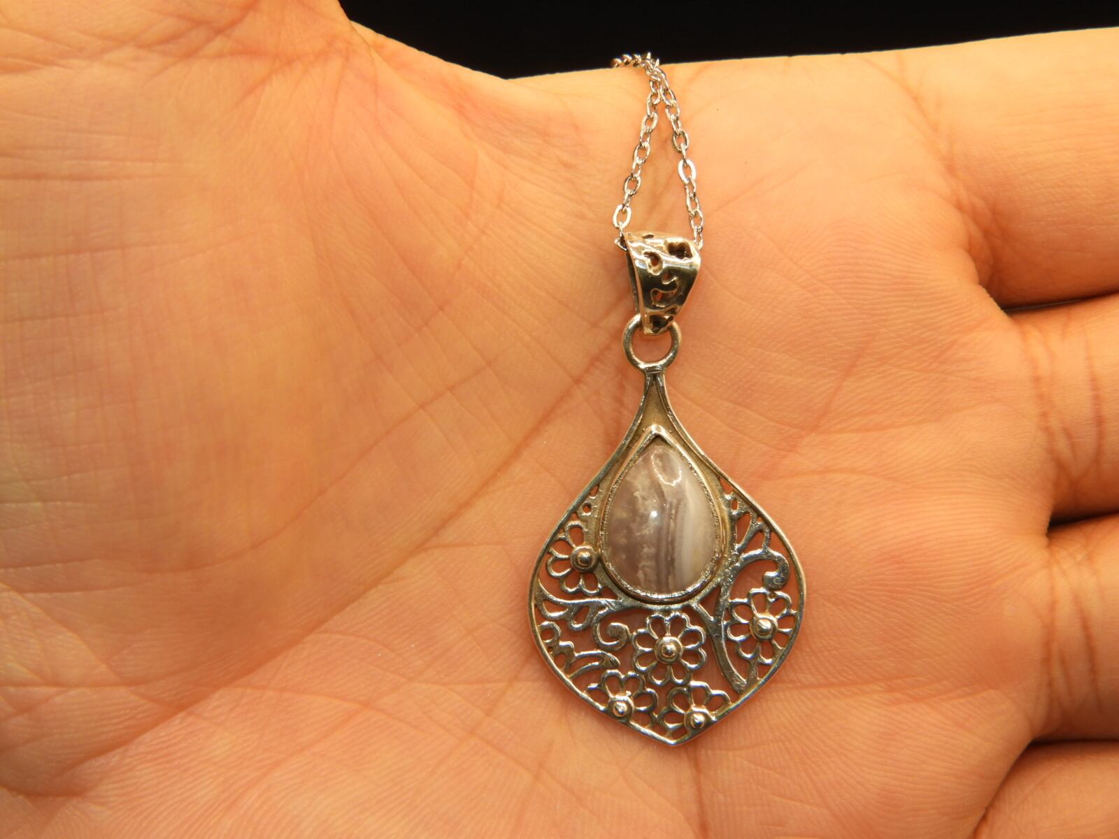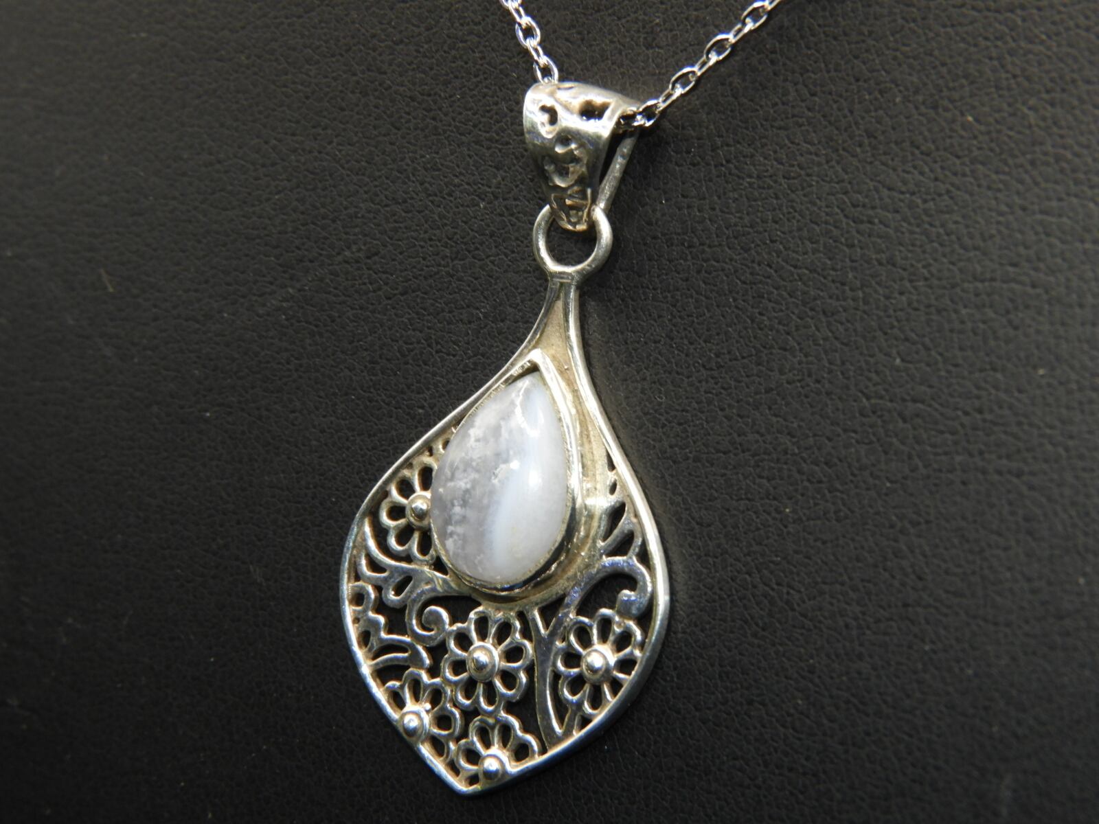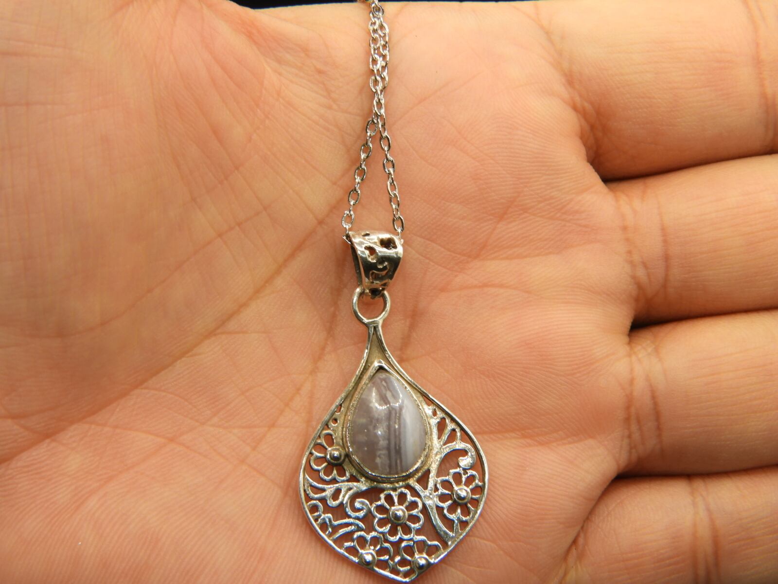 美しいウォーターブルー!インドの職人の手作り!ブルーレースアゲートペンダントネックレス!一点物 天然78