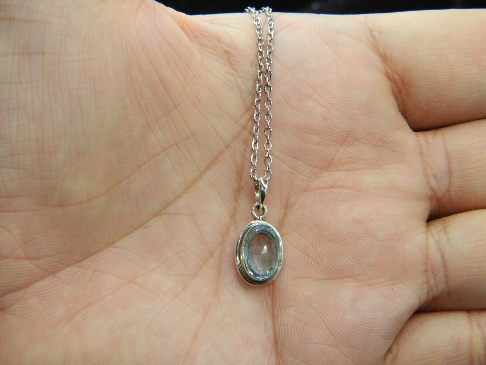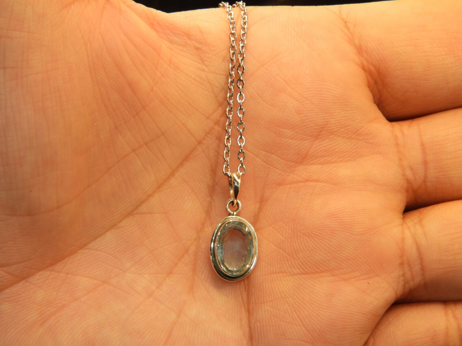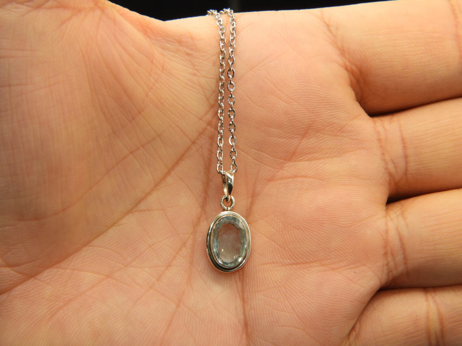 心を癒すウォーターブルー!インドの職人の手作り!ナチュラルアクアマリンのペンダントネックレス!一点物 天然81