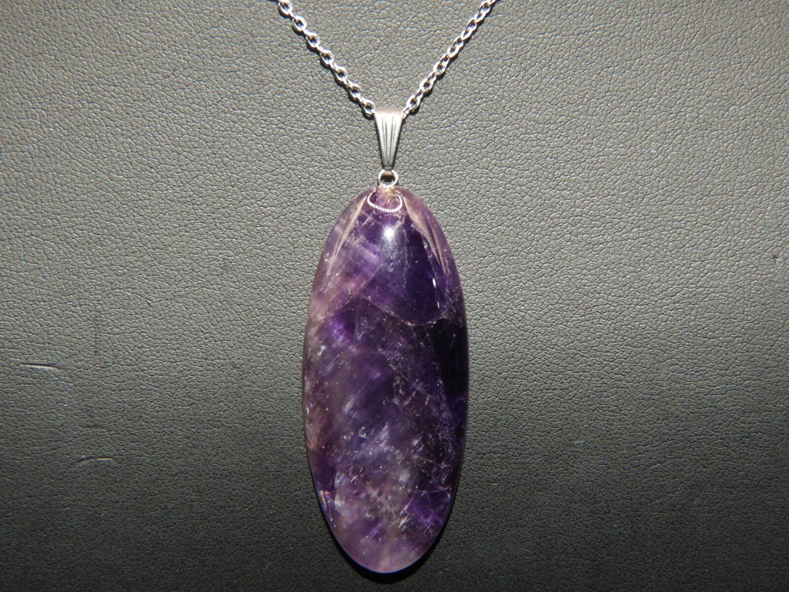 特大!深いパープル!ナチュラルアメジストのペンダントネックレス! 天然石88